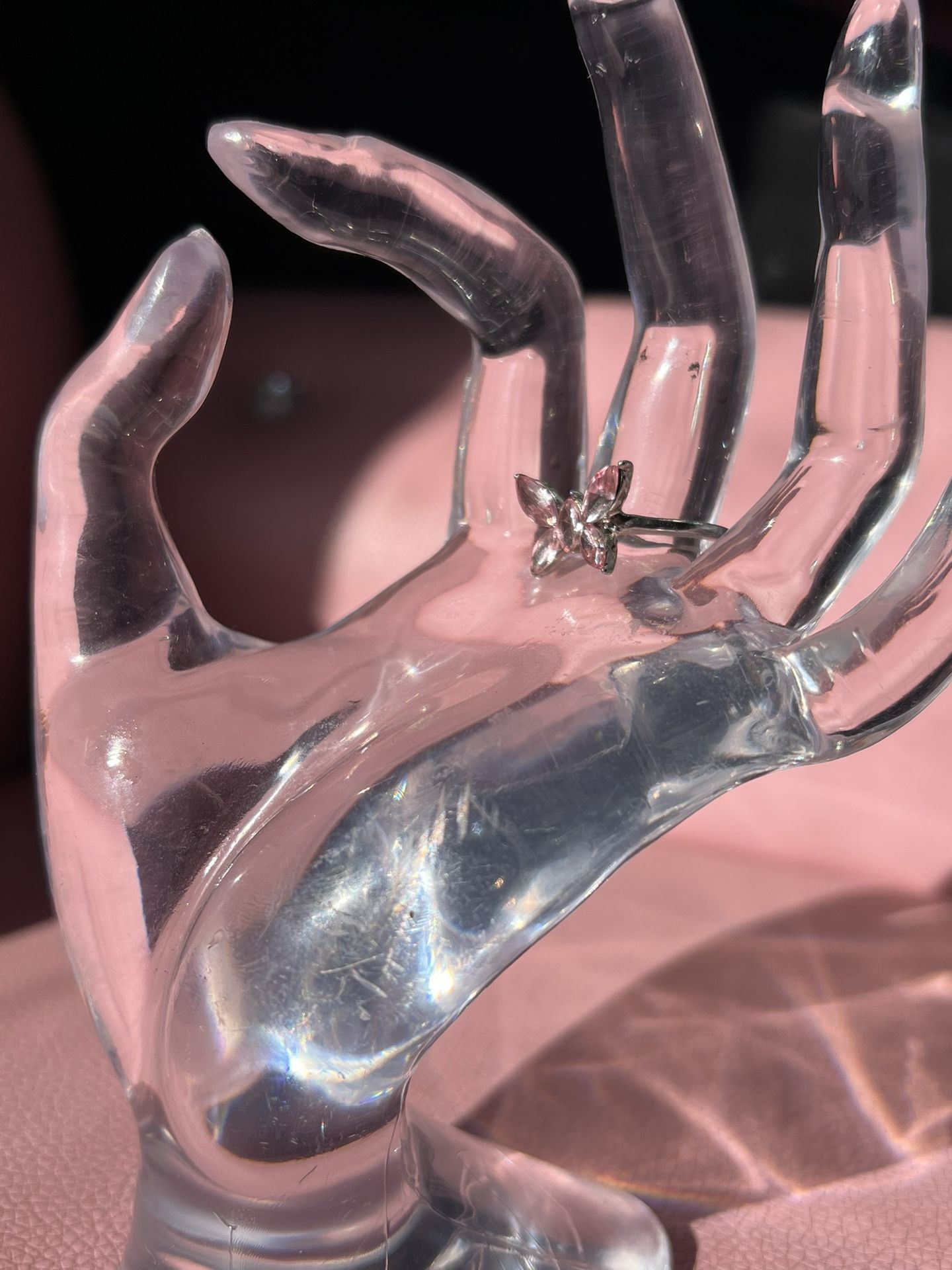Pink Silver Butterfly Ring
