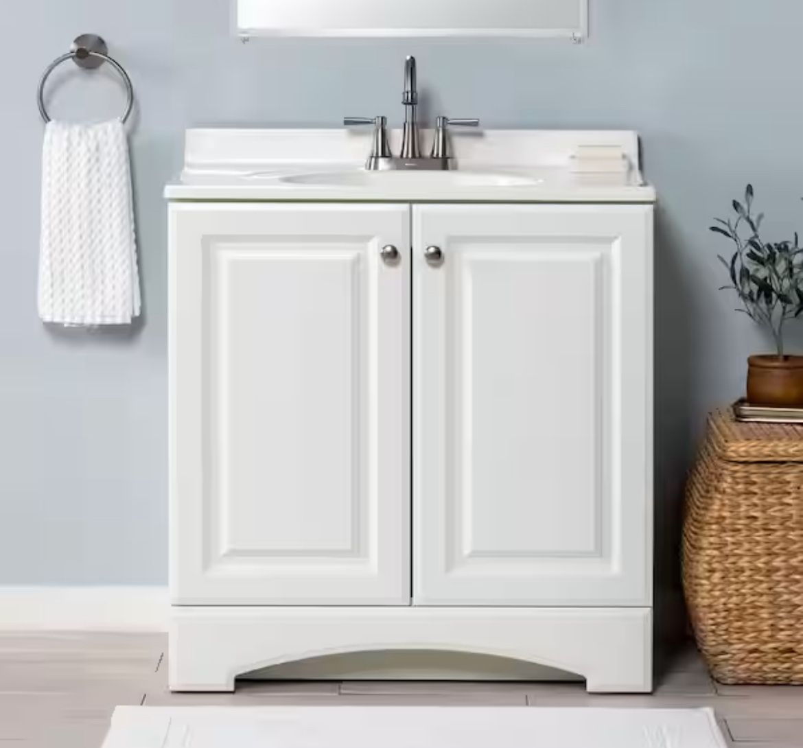 New in! 31 in. Single Sink White Bath Vanity with White Cultured Marble Top (Assembled)