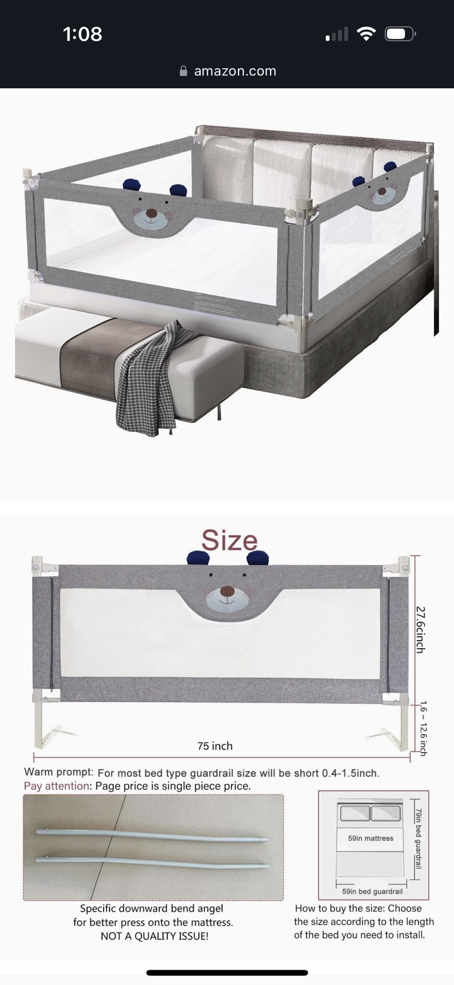 Practically brand new. In original box. Paid over $250. suitable for infants and young children, it is recommended to use 1 to 5 years old. Bedrail for all 3 sides of queen bed.
