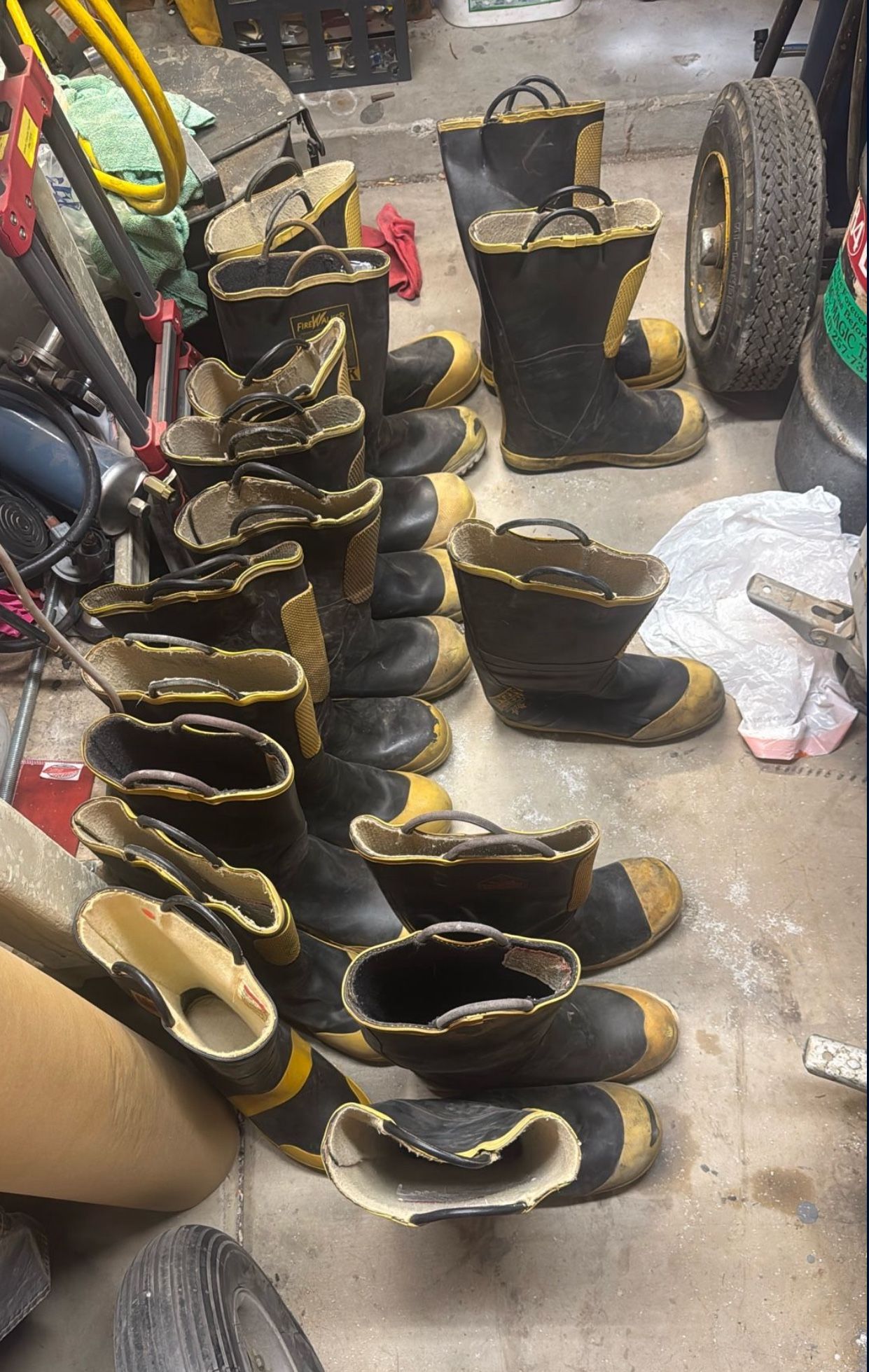 I have a bunch of firemen boots for sale. Sizes up to 13, 12, 11, 10, 9 US men. $20 each or $140 for all. all boots are in very good condition I am willing to talk down so hit me up. shoe sneaker boot