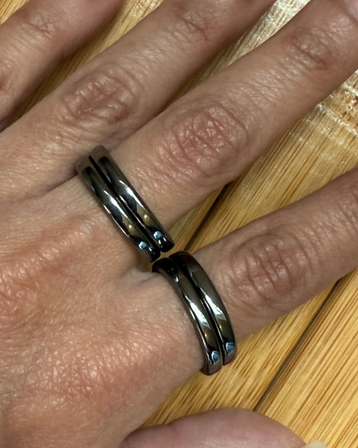 Set Of 4 Polished Hematite Rings (size 5)