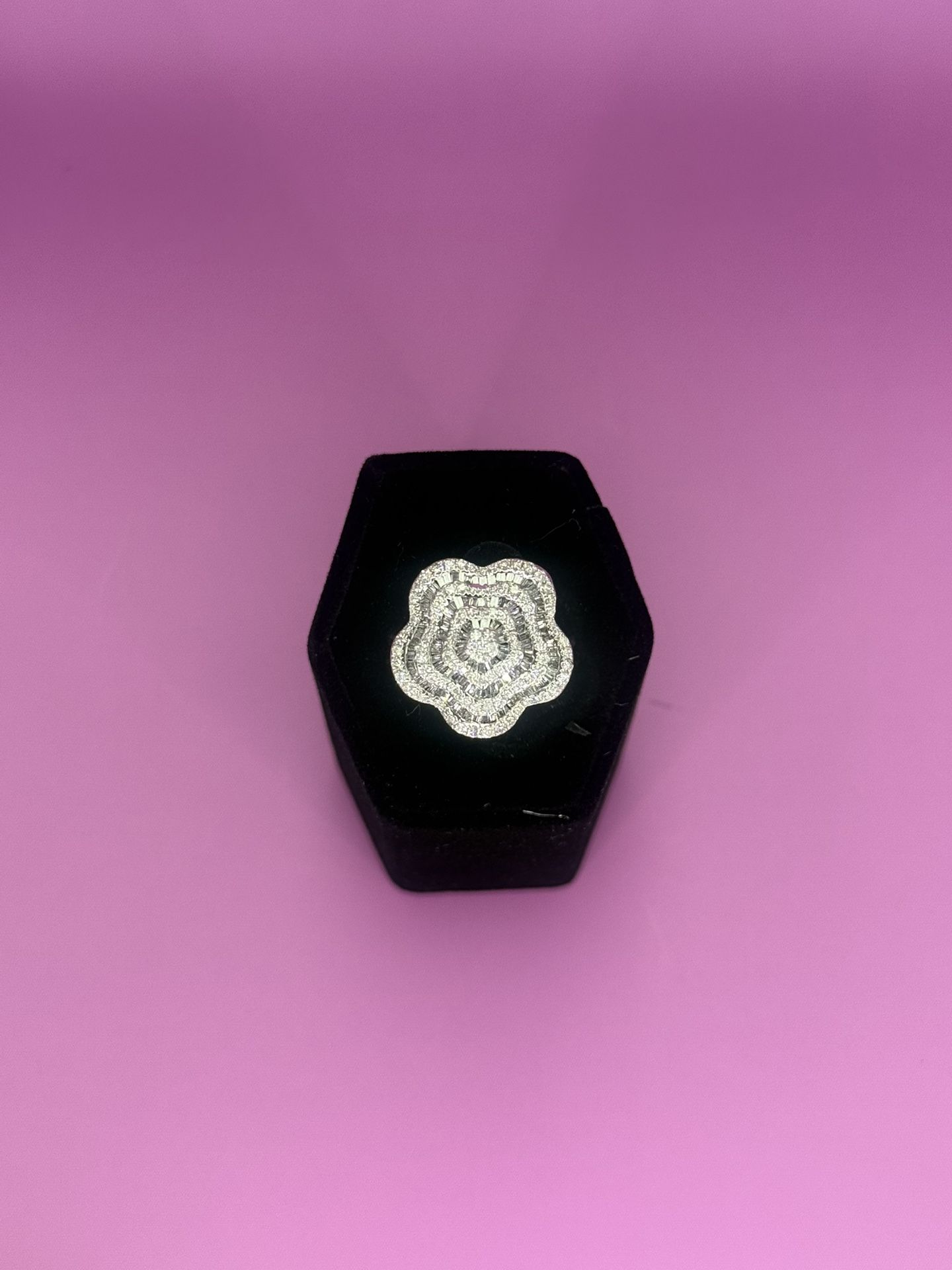 3.3DTW 14KWG FLOWER CLUSTER RING APX 1.10CTW IN STORE PURCHASE PRICE SHOWN IS BEFORE TAXES