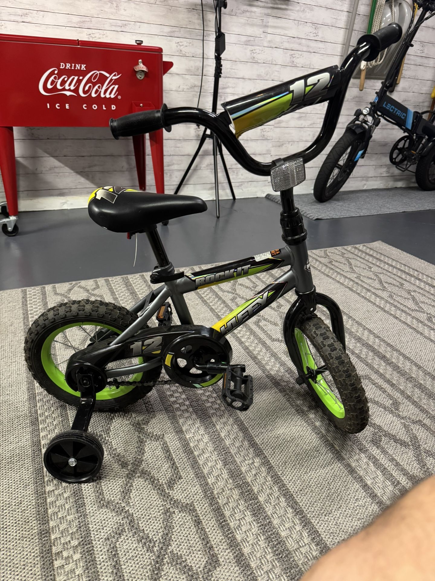 This bike is nearly brand new. I purchased it for my son and he barely touched it. This bike fits between 3-5 years old depending on the size of kid.