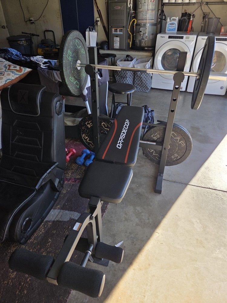 Oppsdecor Weight Bench + Bar Bell & Weights