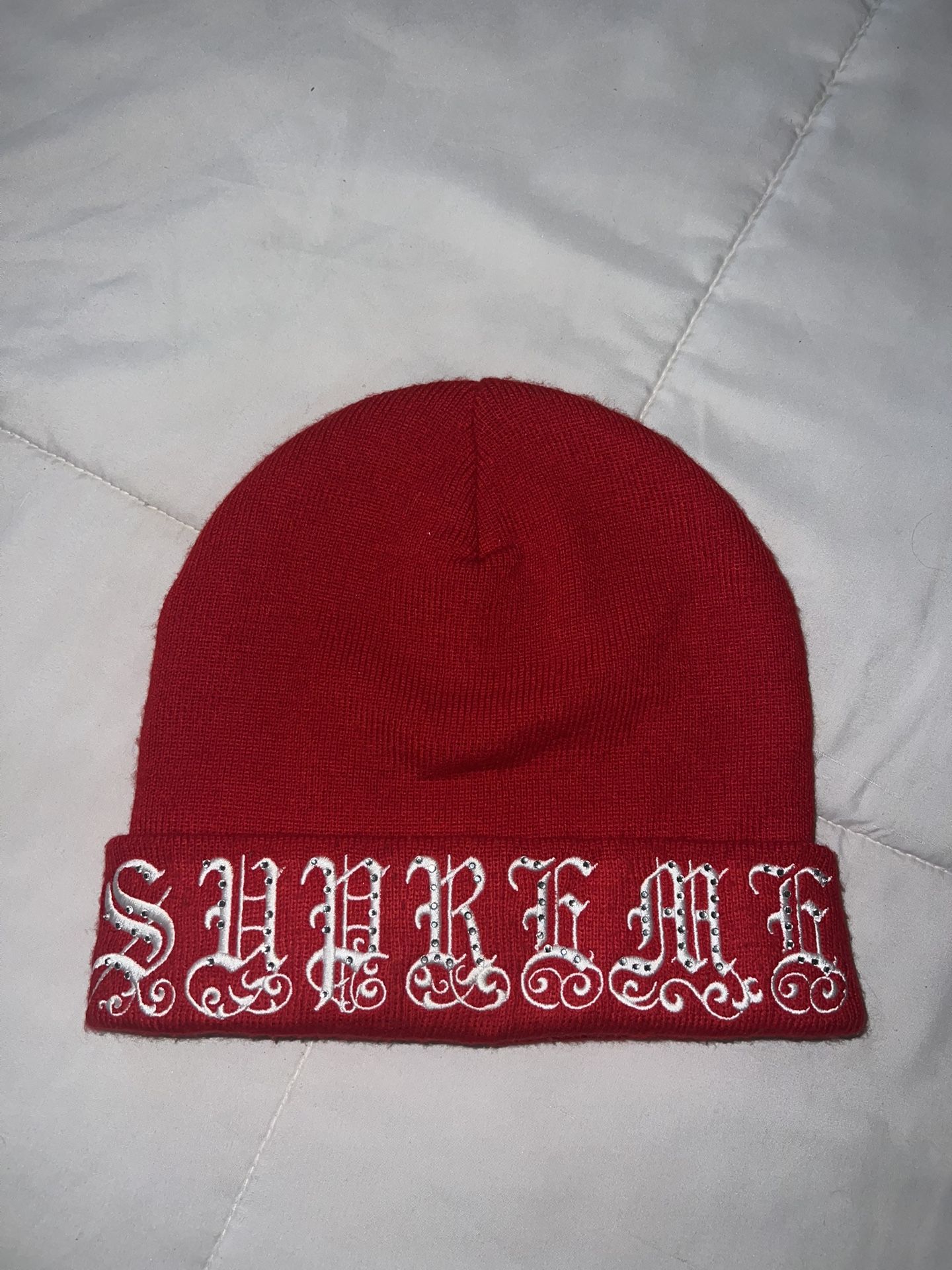 Supreme old English Rhinestone beanie. Worn a few times but in good condition. Bought this from the website years ago. $50 and it’s yours