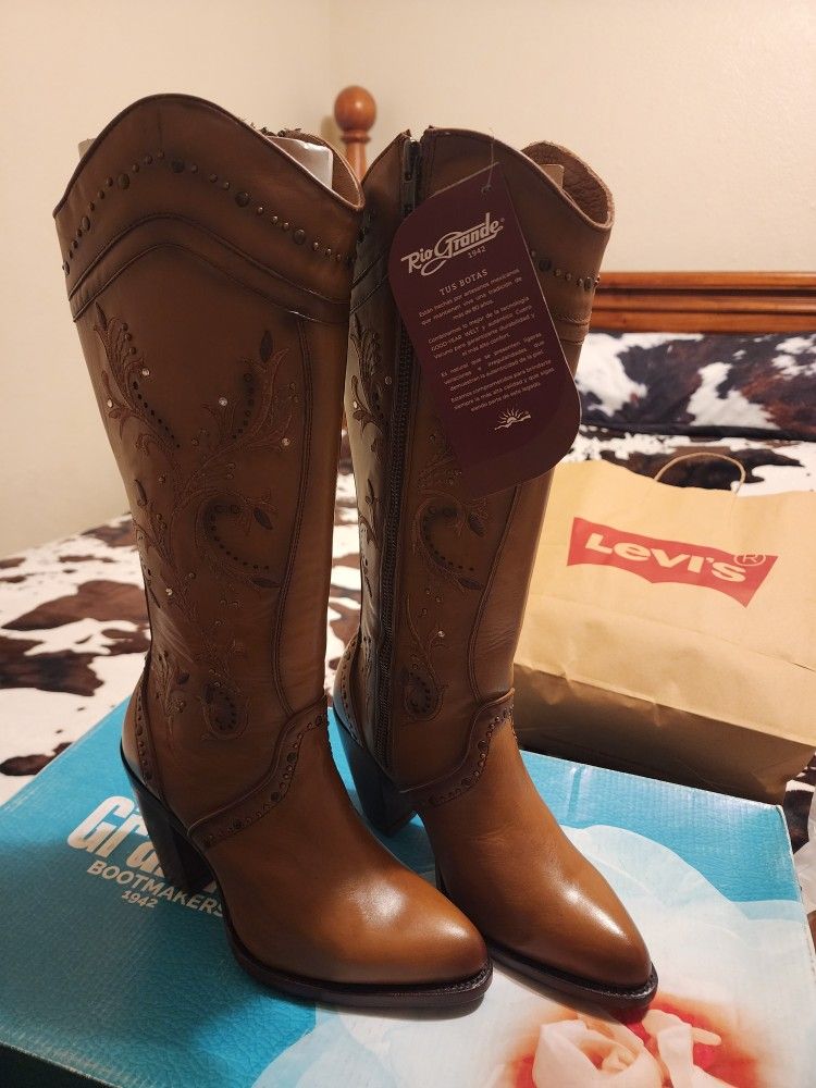 Selling real leather boots, bought in Mexico but the heel is to high for me and they are a bit tight on my feet, need a half size bigger..they are size 7½ but they fit more like a 7 and they are just under the knee and are for slimmer calfs
