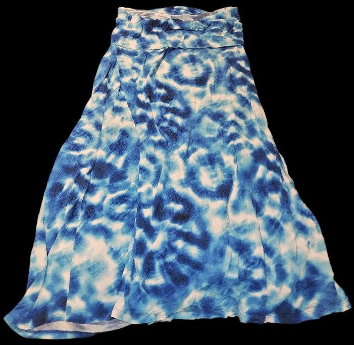 Elegant maxi skirt with a vibrant blue and white pattern. Flowy and stylish design. Perfect for any occasion.