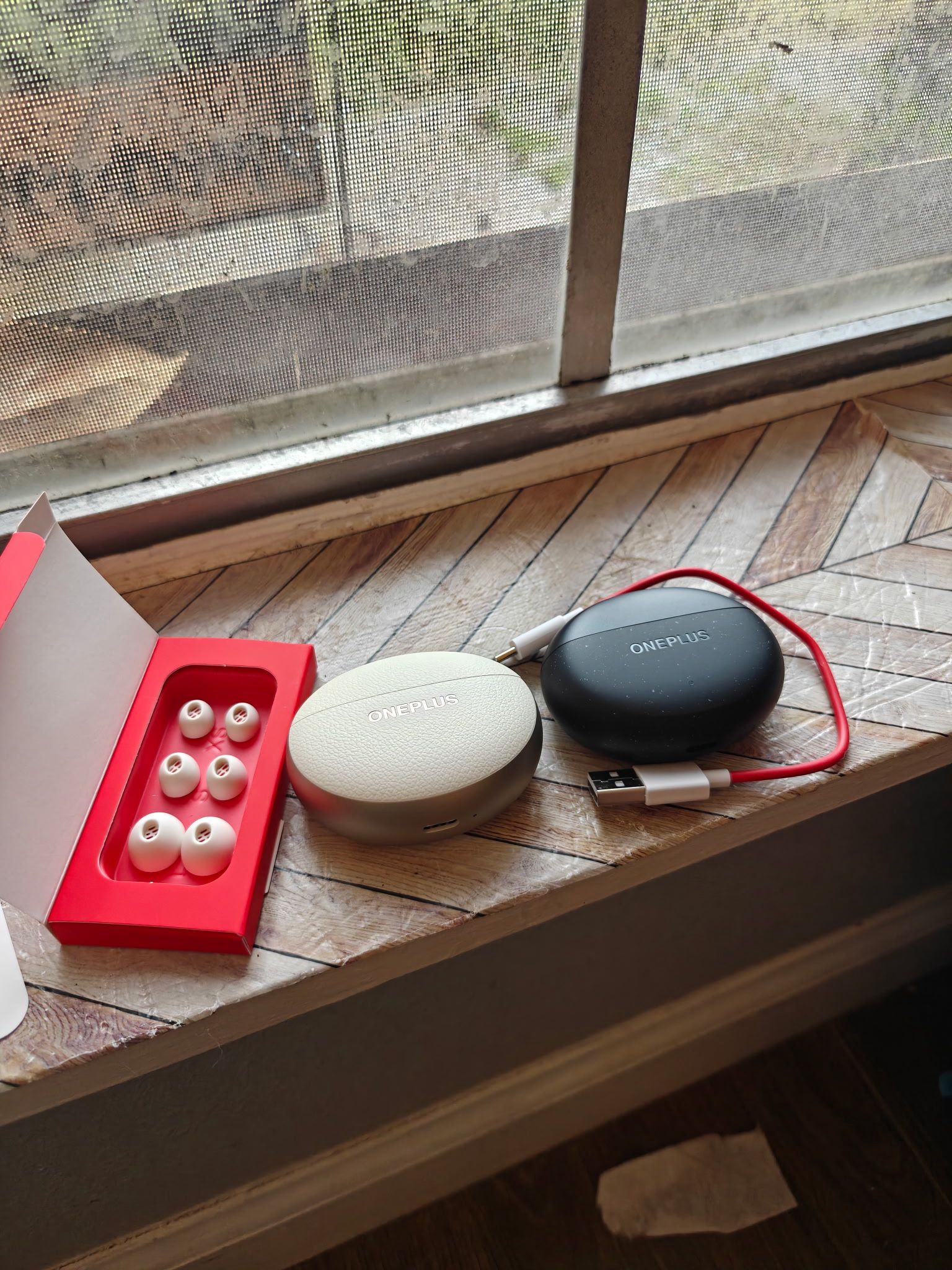 There are two options to pick from here. Both brand new both excellent head phones. The oneplus Buds pro 3 (white) retail for 179.99$ and work fantastic with an Android or Apple device. They definitely rival the AirPod Pro 2’s I have. They have some extra cool features if you have a Oneplus smartphone. White pair ~ 120$ black ~ 30$
