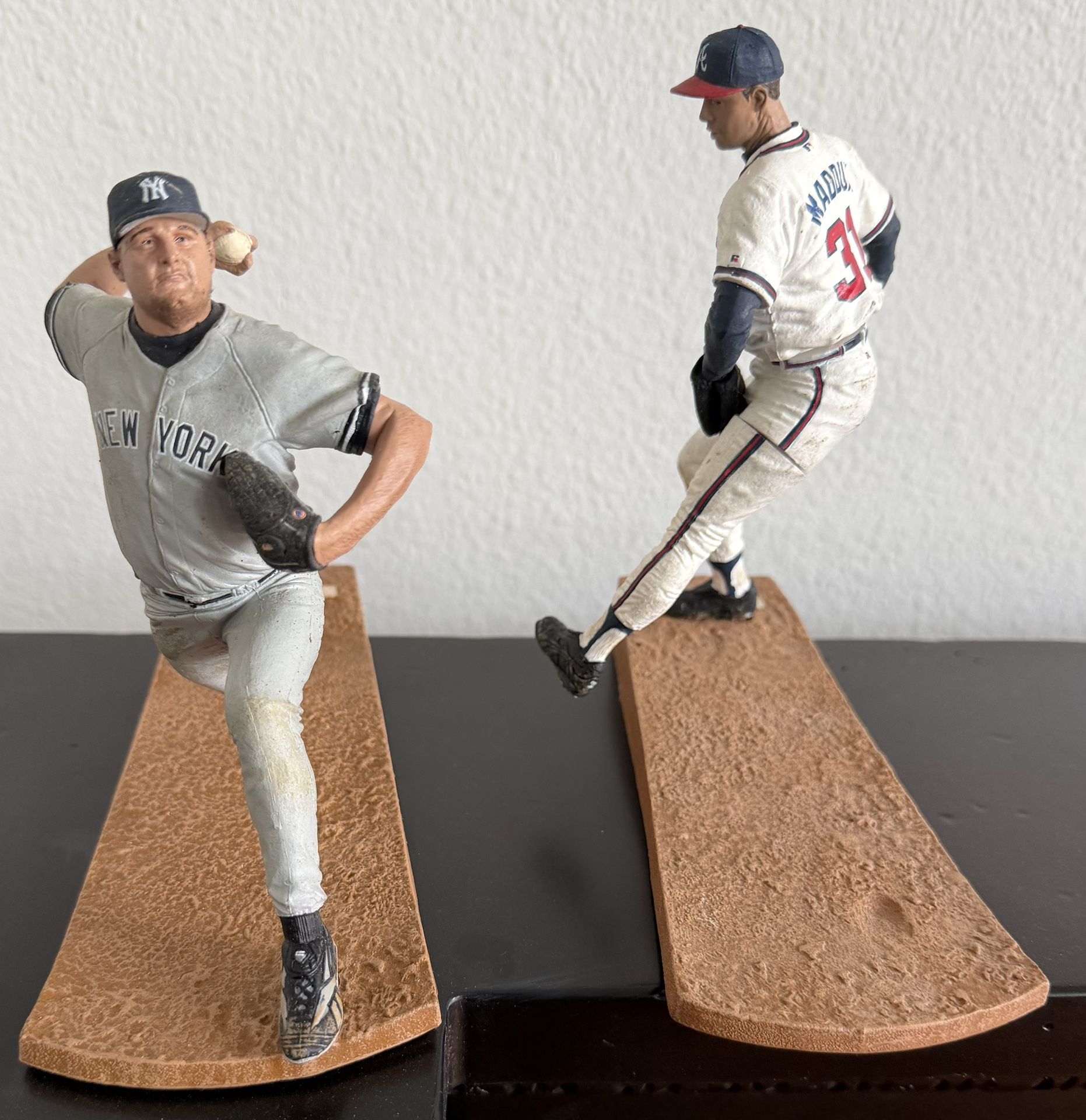 2 preowned McFarlane Baseball Player Figures Rodger Clemens And Greg Maddox no original packaging pick up only