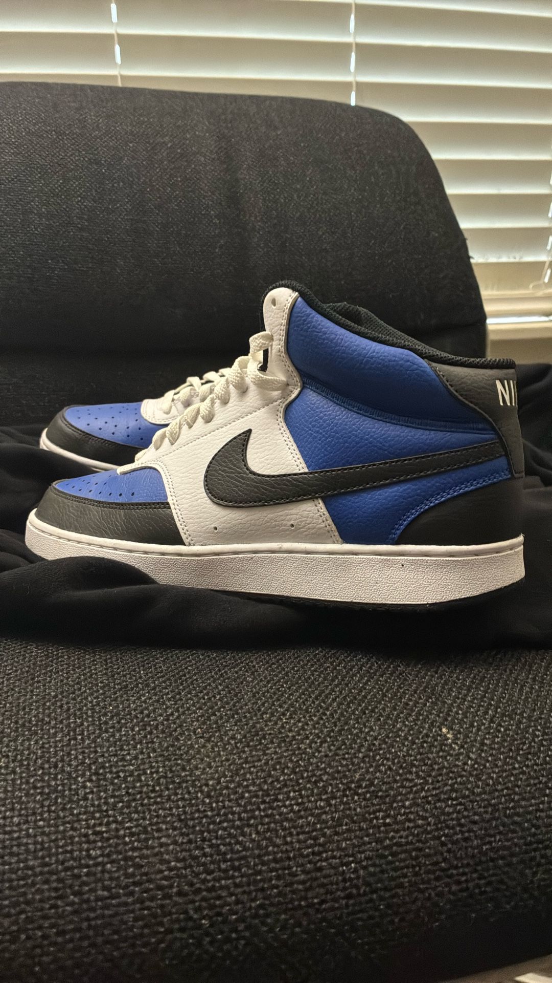 these are nike court vision mid top shoes, size is 10.5 only wore them 2 times trying to get rid of them, shoot me a price.obo