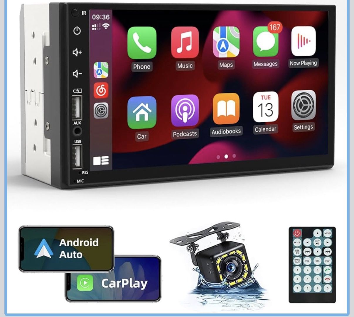 Double Din Car Stereo Radio Support Apple Carplay&Android Auto, 7inch HD Touchscreen Double Din Radio with Bluetooth, Car Audio Receivers, Camera, Mir