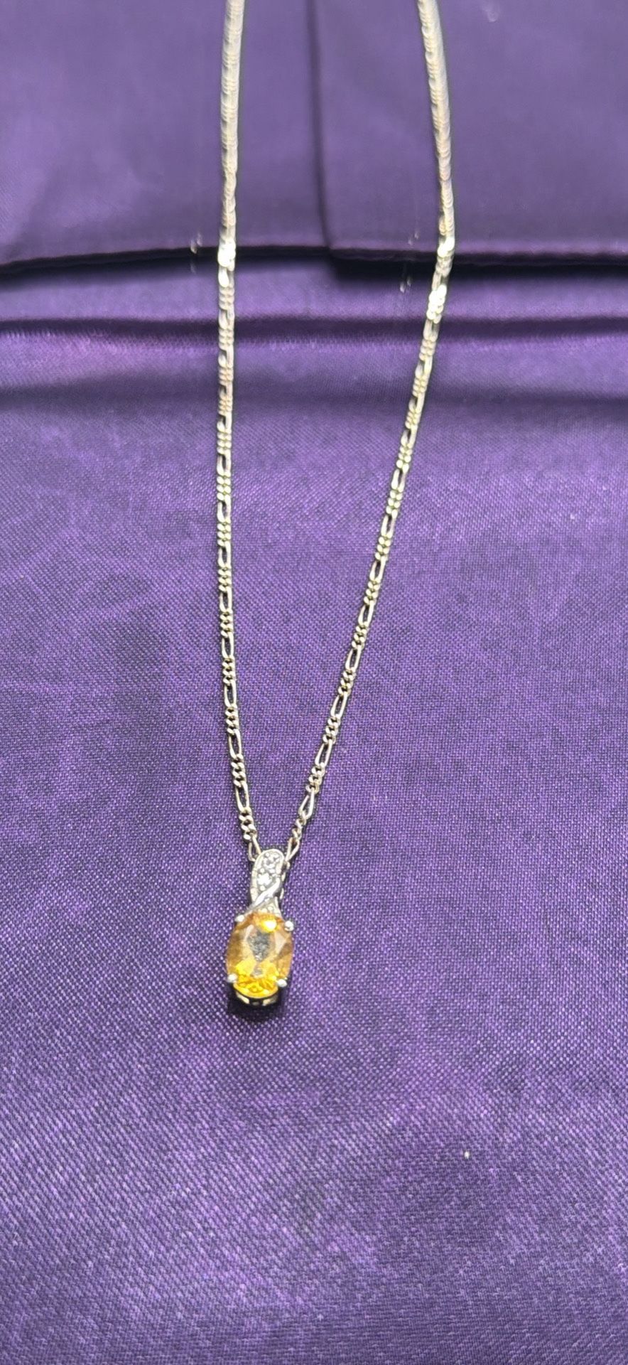This is a sterling silver 925 necklace with a citrine stone. 18” necklace