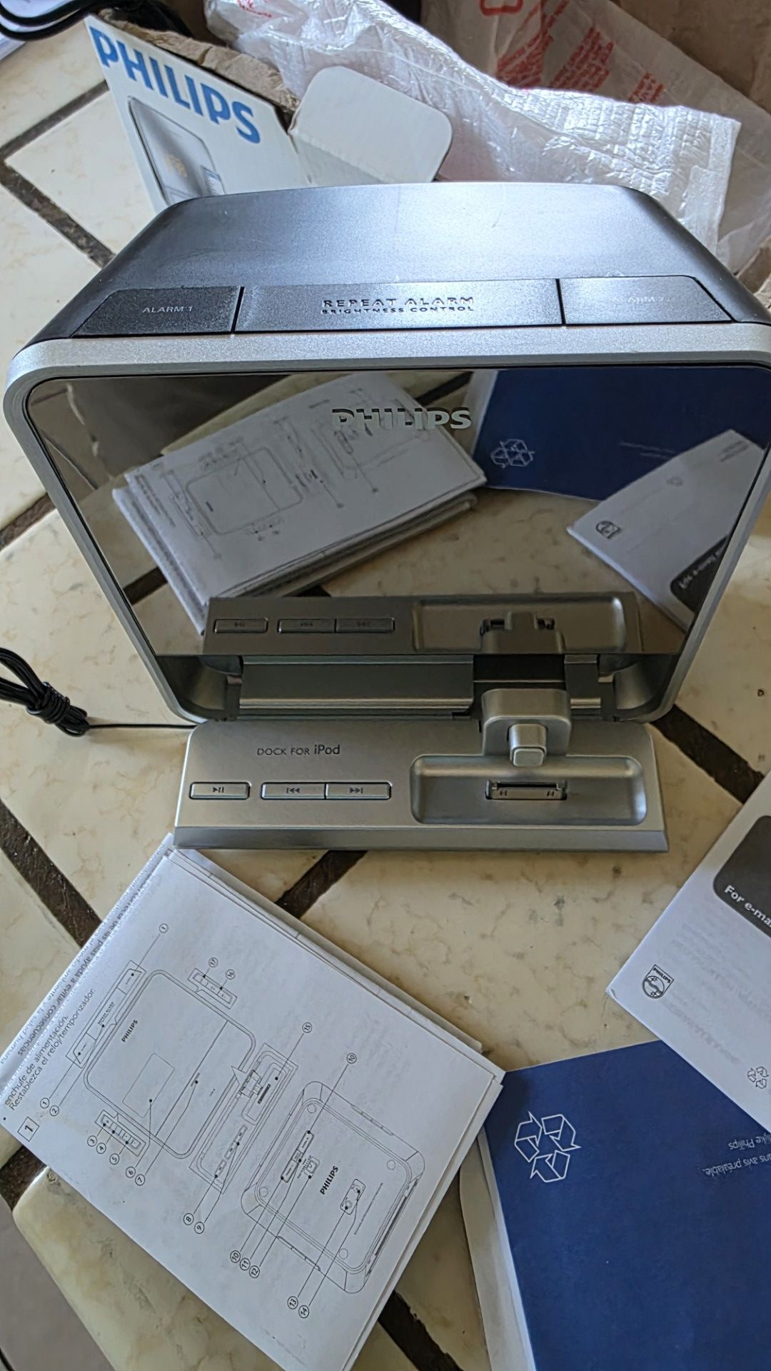 New, Open box, never been used Philips docking entertainment system for Apple ipod.