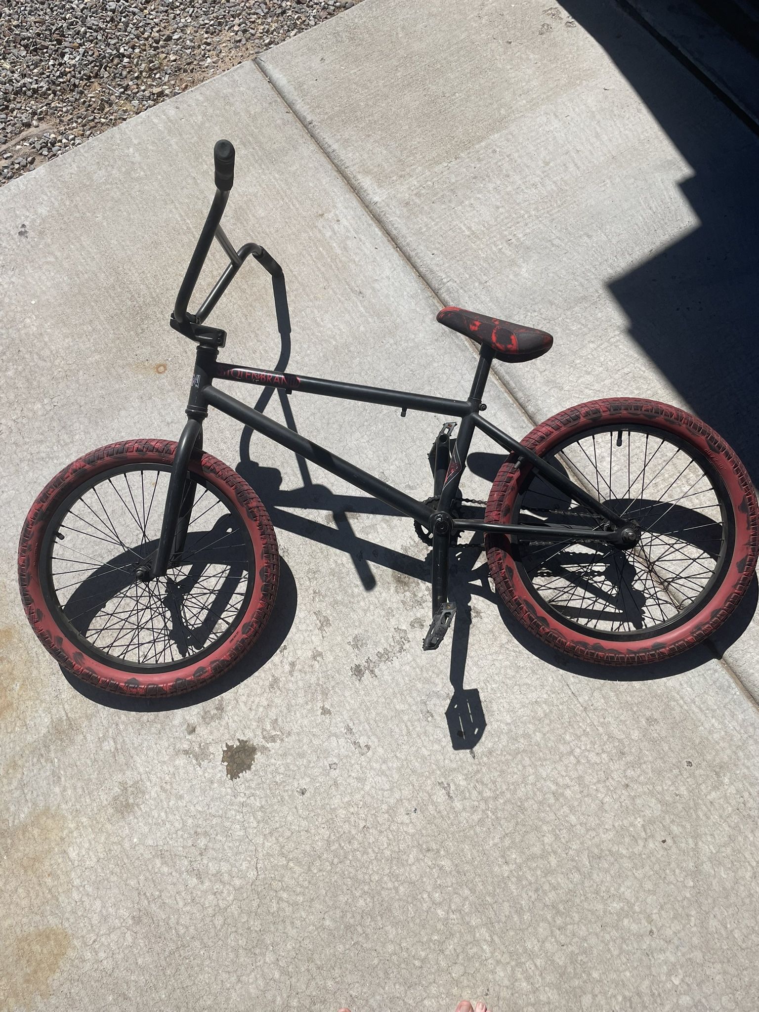 Bike is in great condition, solid bmx bike. There are not brakes. But perfect for skate park riding.
