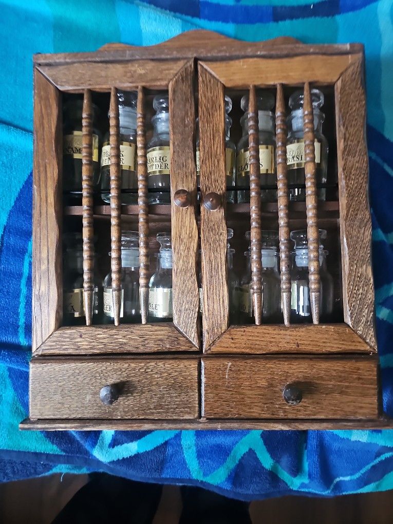 Vintage wood and glass Spice rack from japan Check the rest of my Page U might find something u like Thanks Have a nice day Cash only