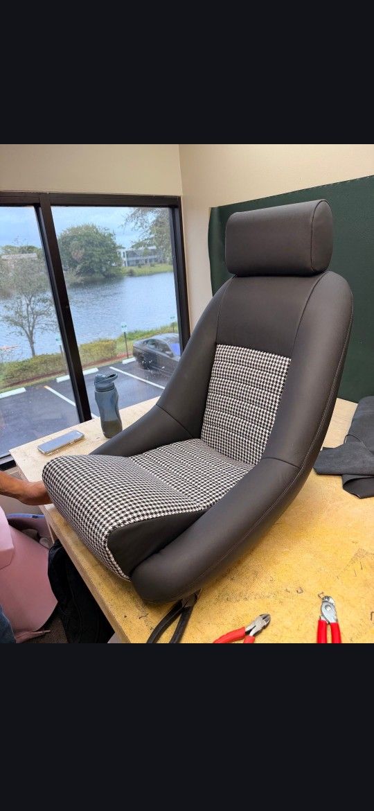 New beautiful replicas of the 1(contact info removed) PORSCHE 911 'Sportseats' comes with slider kit. Finished in real Leather bolsters with houndstooth centers. More affordable that the $16-18k oem Recaros.