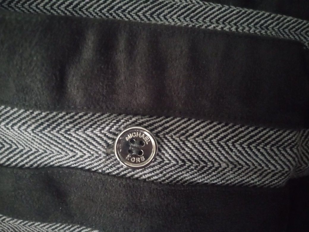 Michael Kors king size duvet cover with 2 shams. The shams are extra large and measure about 18 1/2" wide by 36" long each. Has dark grey suede trim and silver buttons that say Michael Kors on them. The fabric is thick with dark grey (almost black) and white pattern. Shams match the duvet cover. Duvet cover opens and closes with the same silver buttons that say Michael Kors on them like the pillow shams. You can put a comforter inside of the duvet cover or use it without a comforter inside. Nice looking set and in excellent condition. Pictured are the 2 shams because the duvet cover is too large to take a picture of.