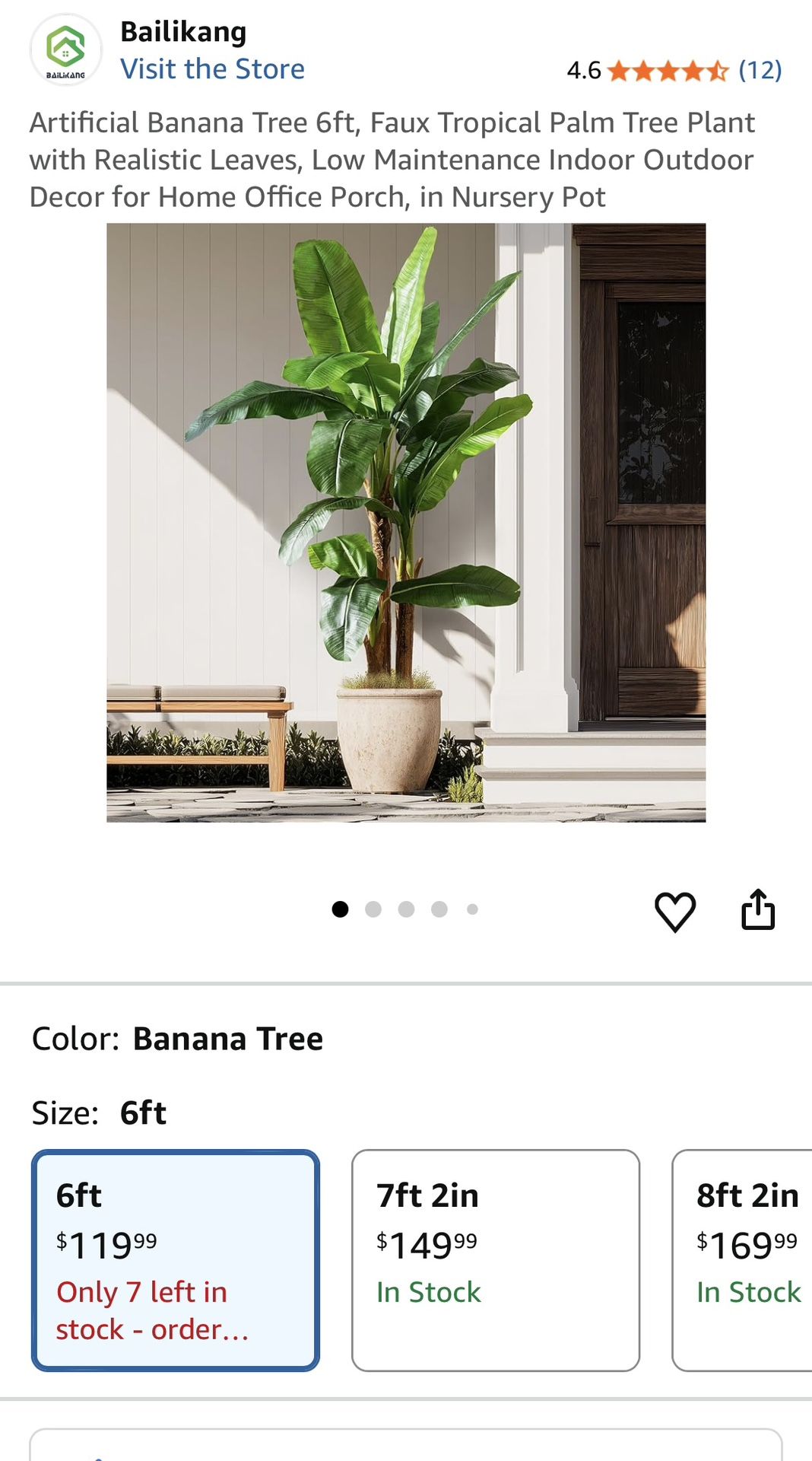 Brand New Artificial Banana Tree 6ft, Faux Tropical Palm Tree Plant with Realistic Leaves, Low Maintenance Indoor Outdoor Decor for Home Office Porch etc.