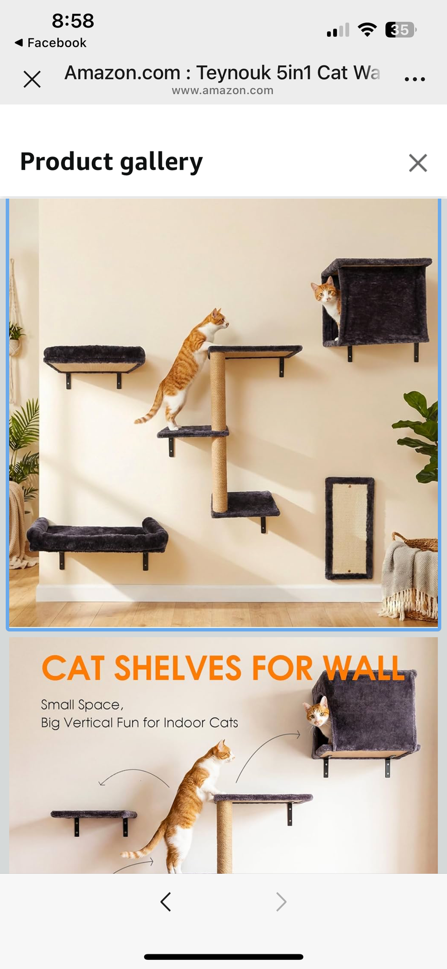 5in1 Cat Wall Shelves Climbing Systems, Large Cat Furniture Shelf Set Wall Hanging Mounted, Sisal Scratching Perch Bed 2 Steps Tower Tree for Indoor H