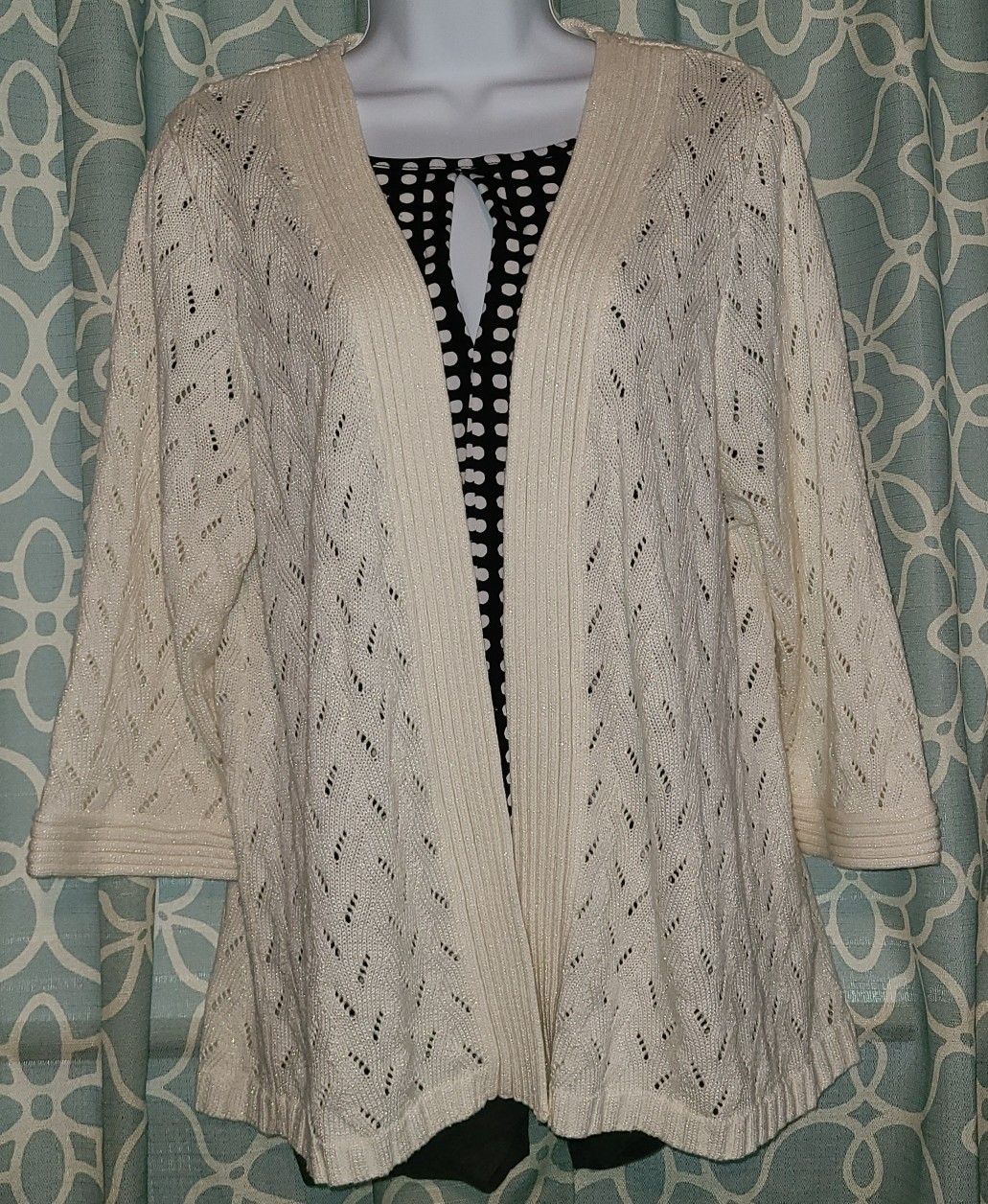 TanJay Cardigan Size: Large Color: Off-White with embeded Silver *This item is Like New but has No Tags