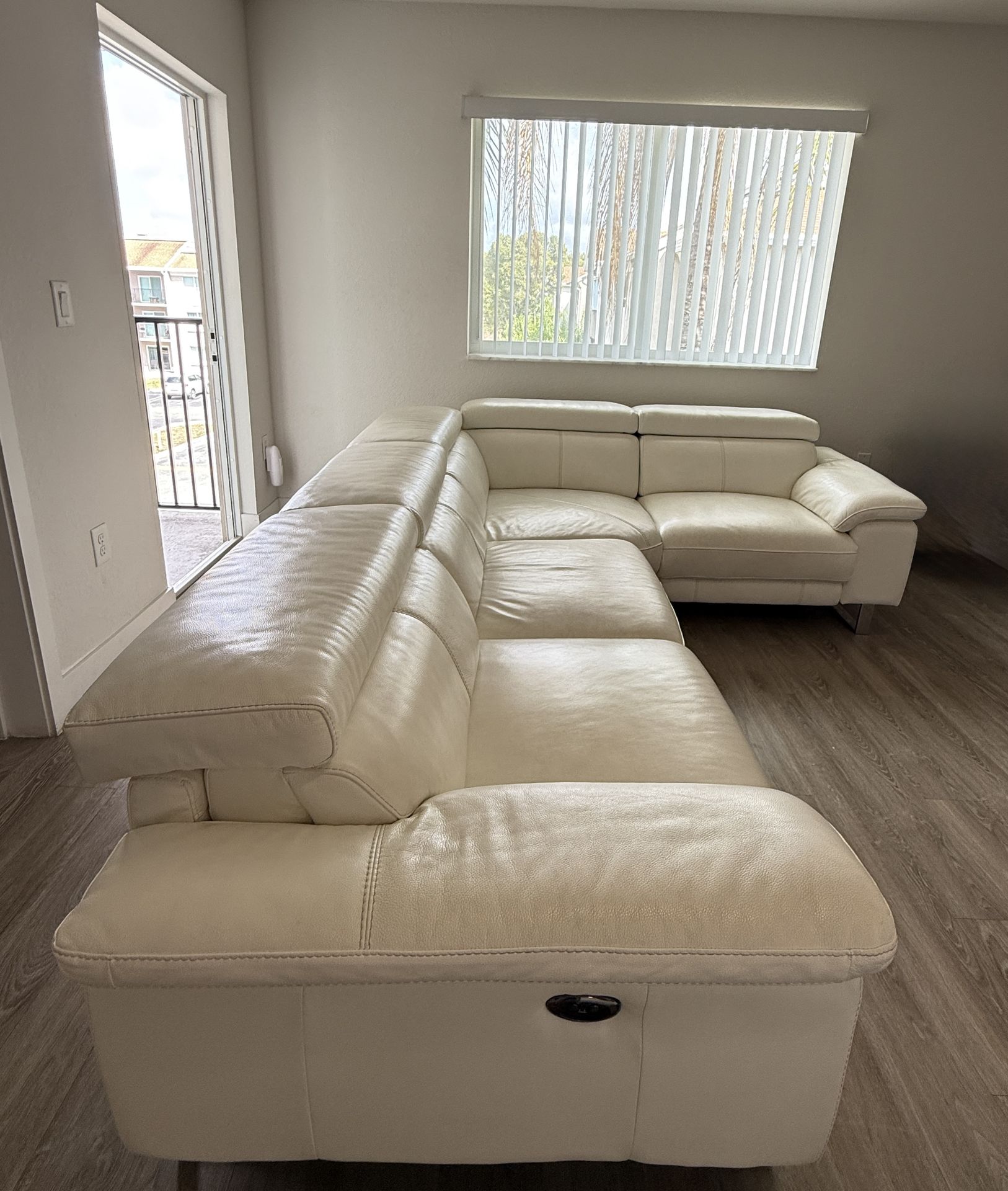 Light Cream Leather Reclining Sectional Sofa Like New (CUTLER BAY AREA)