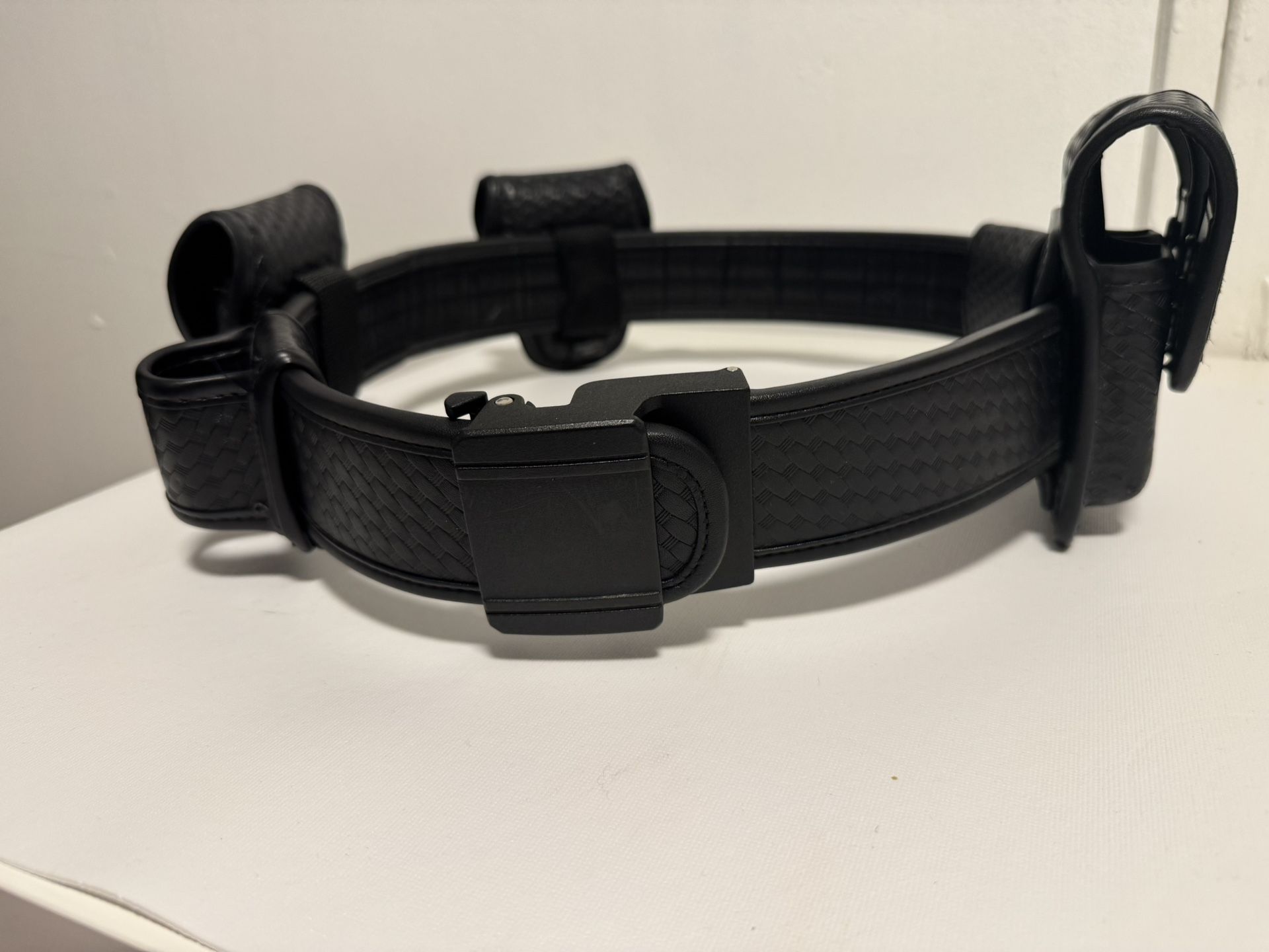 Includes 2 Hand Cuff Pouches, Flash Light Holder, Radio Holder, And 4 Matching Keepers. Duty belt is made by “KORE” it’s an adjustable belt that is flexible and comfortable. Total cost $280.00 ( $190.51 for belt and the rest for hand cuff pouch/flash light holder) however selling it all for $140.00. Be advised belt is slightly used but in great condition. From 1-5 it’s a 4.