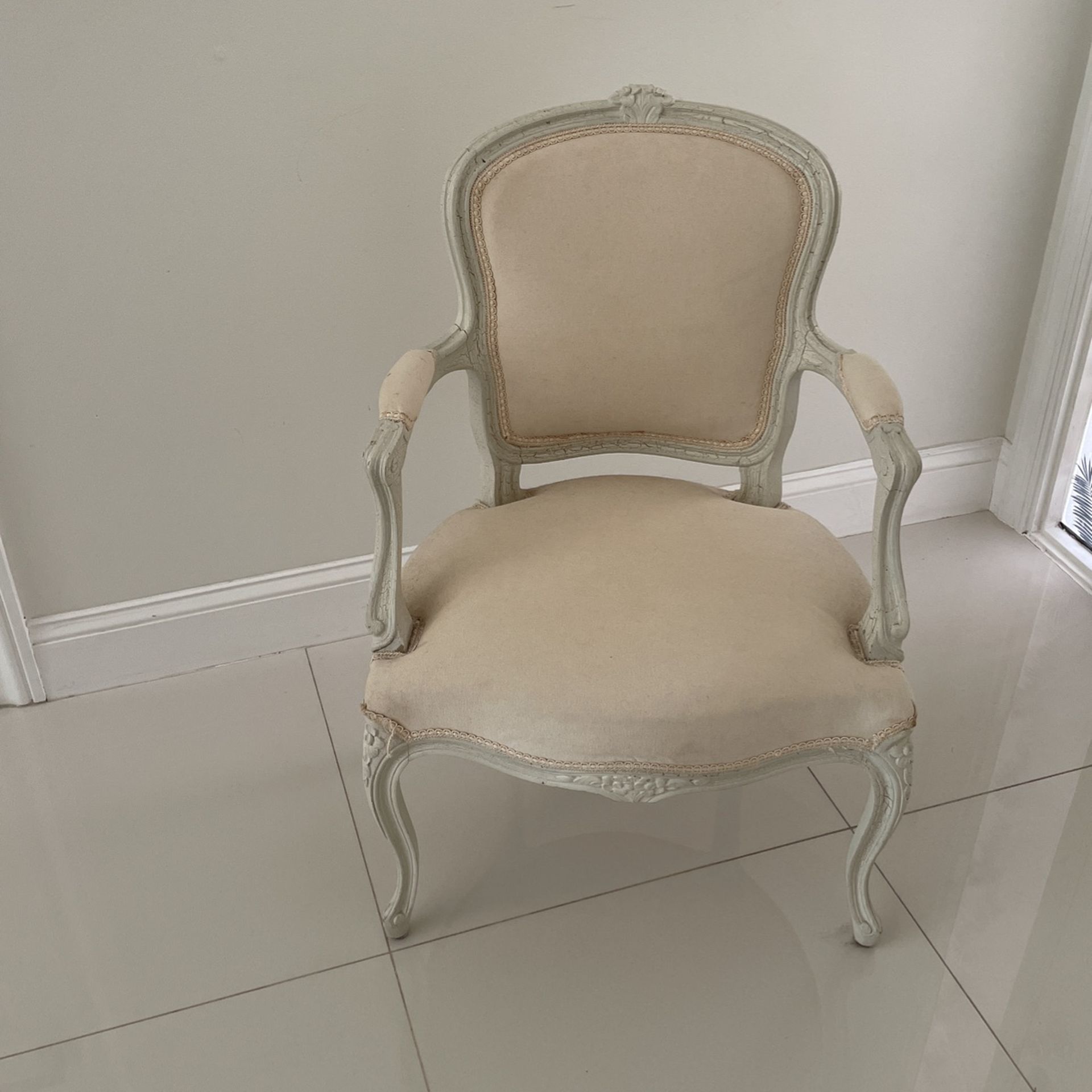 Solid wood - upholstered armchair -linen - color beige - a real antique bought in France - will be a very unique accent chair that no nobody else would have - not a replica - .