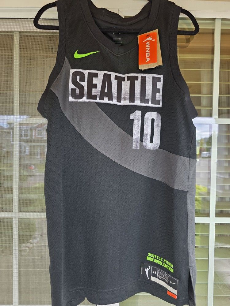 Brand New. Never Worn. New With Tags. NWT. Nike WNBA Seattle Storm #10 Sue Bird Basketball Jersey. Rebel Edition. Victory Jersey. Model # DC9602-010 Have Several Sizes Womens Medium. Mens Size 44 Womens Large. Mens Size 48 Womens Size XL. Mens Size 52 Womens Size XXL. Mens Size 56 Nike. WNBA. Basketball. Jersey. Seattle. Storm. Seattle Storm. Sue Bird.
