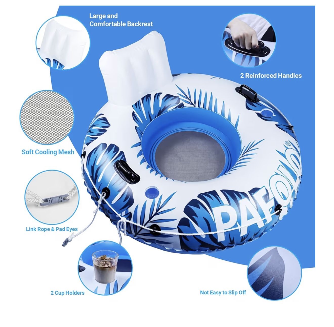 Inflatable River Tube Float, 53"Pool Float Adult, River Tubes for Floating Heavy Duty with Mesh Bottom, Water Tubes for Beach Lake Rafting, Comfortable Backrest & Cup Holders,450 lbs Weight
