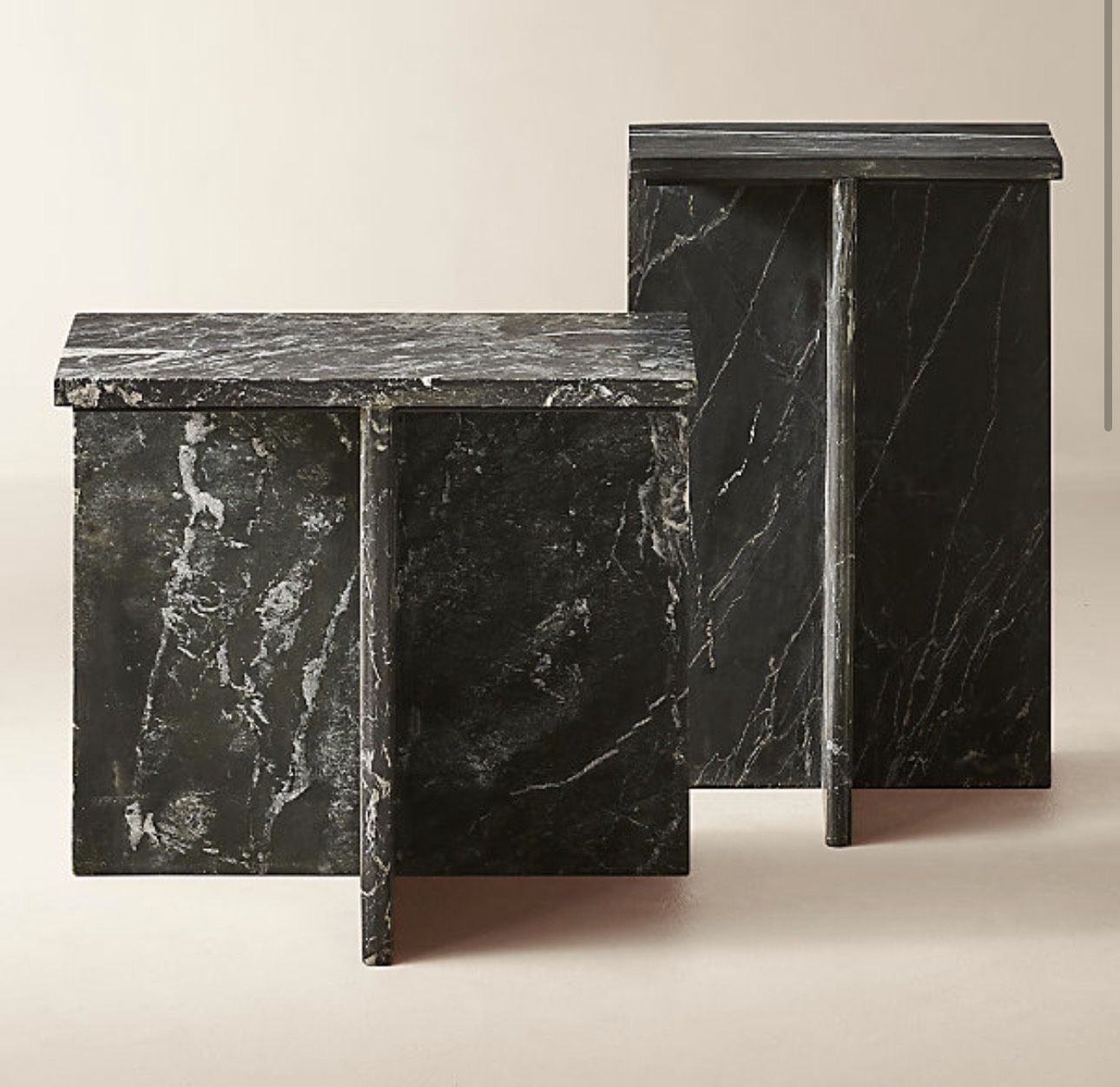 NEW CB2 T Marble 2-Piece Black Marble Side Tables