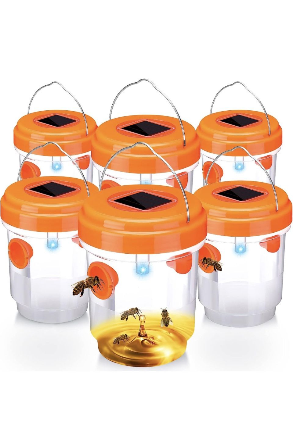 Wasp Trap Solar Powered Bee Trap Reusable Fly Traps Outdoor Hanging Wasp Killer with UV LED Light Flying Insects Bee Killer for Indoor Outdoor Patio G