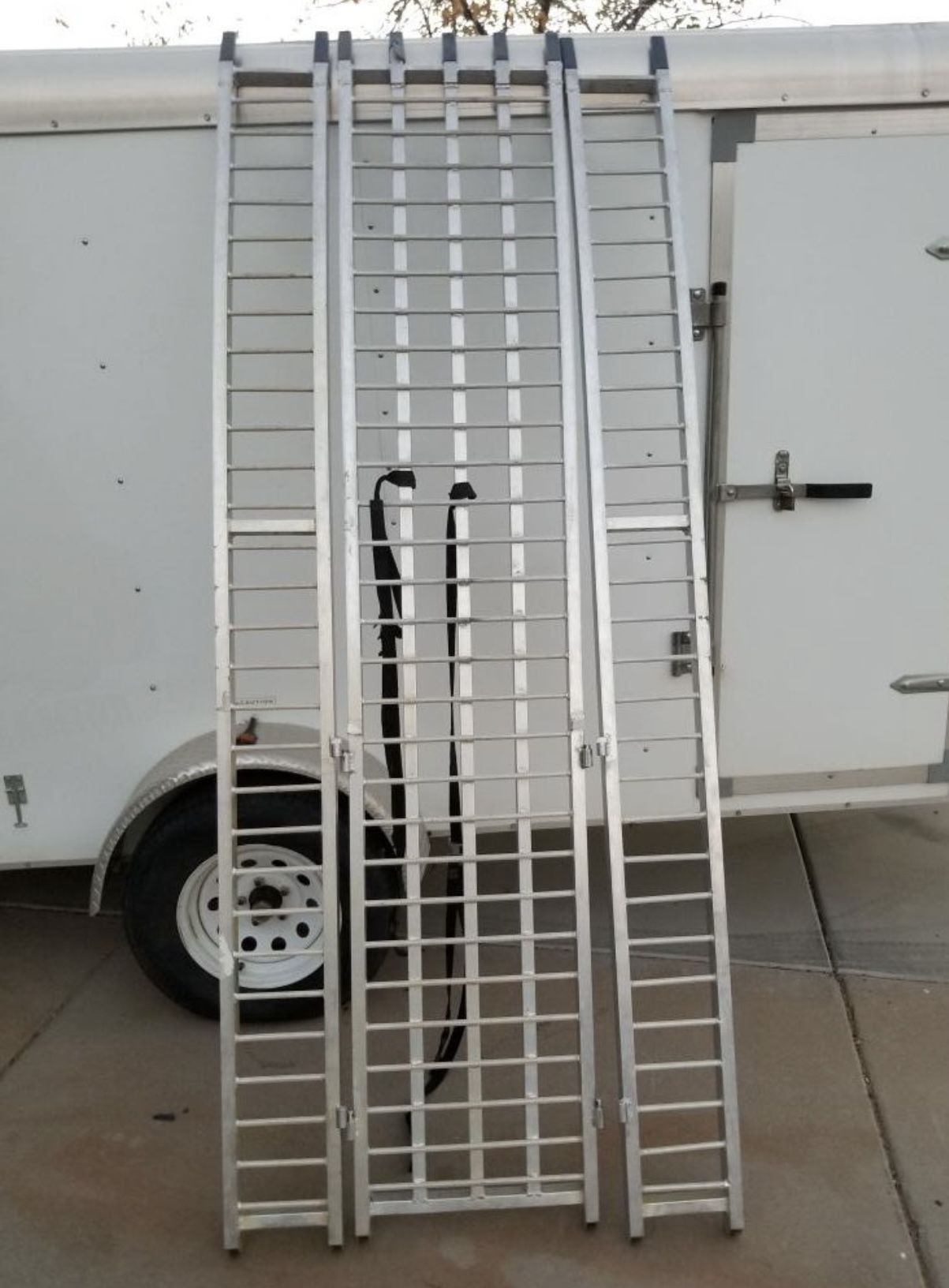OXLITE BRAND RAMPS New never used #11652 (65T) The Dresser Ramp MSRP $526.99 Your Price $250.00 1500 lb. Load Capacity, Weighs only 65 lbs. 36" Wide x 94" Long (Folds to a width of 18") Designed to safely load large motorcycles with ease Special arch prevents bikes from bottoming while loading and unloading Extra length reduces incline for comfortable, safe use Rubber Tipped Fingers provide a strong grip Unique hinge system allows side panels to detach for easy storage Serrated crossbars provide superior traction Constructed of .125 gauge aluminum which is super strong, lightweight, & will never rust Includes 2 safety straps to secure the ramp while in use This ramp is new