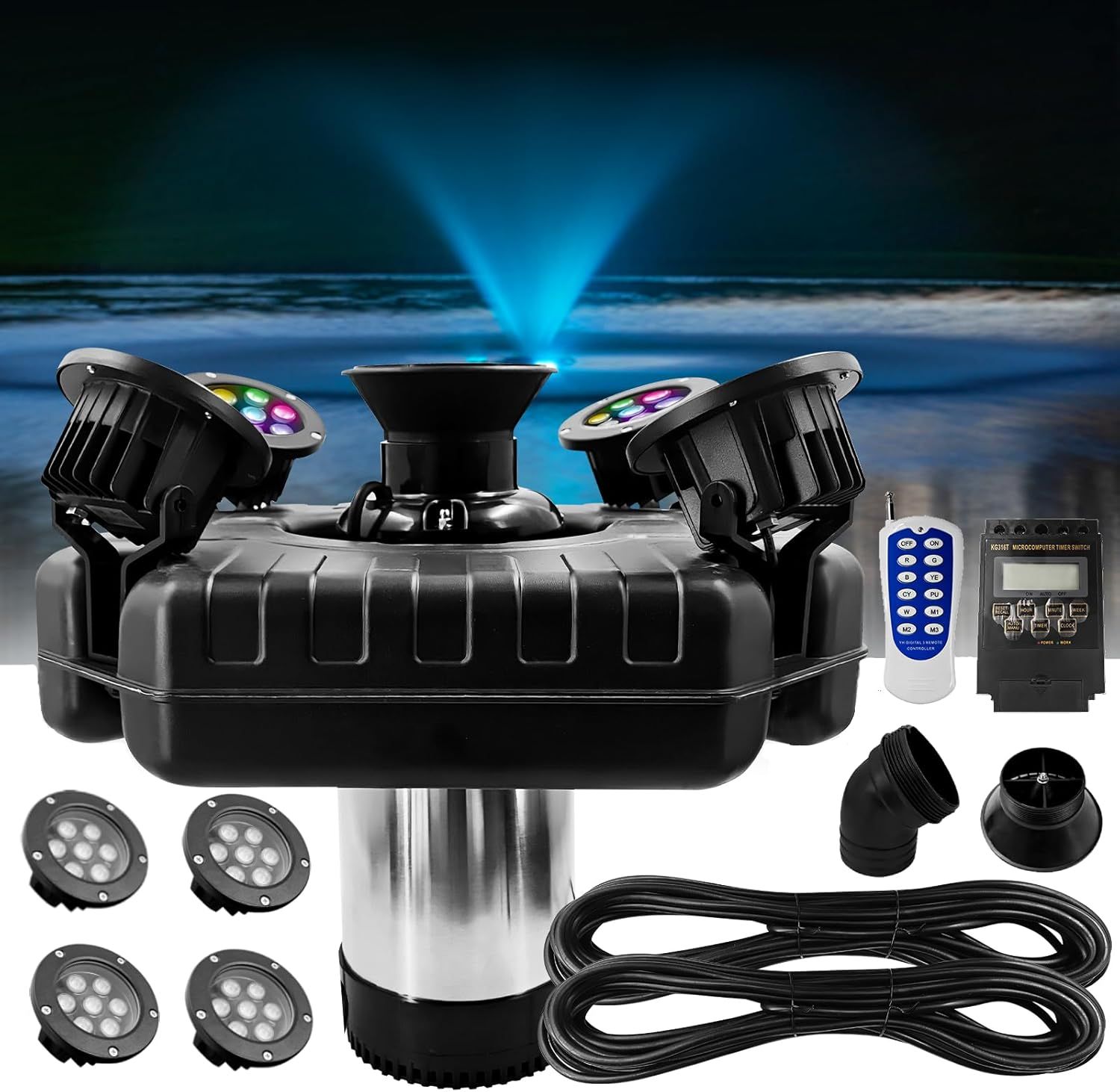 1HP Floating Pond Fountain Aerator with RGB LED Lights – 15000 GPH