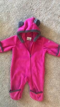 The cold weather is coming. This Columbia fleece hooded bunting suit is in excellent condition. Was only worn a couple times. Pet and smoke free home. Porch pickup.