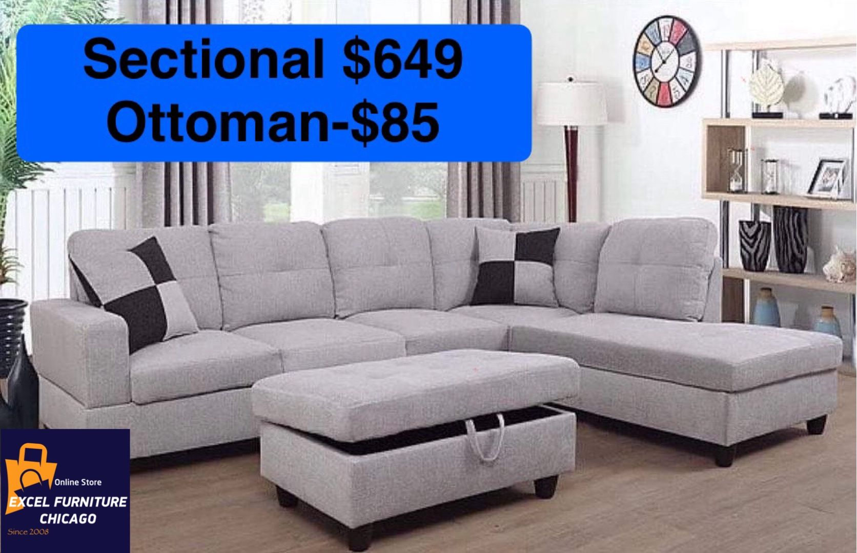 ♦️ORDER NOW – PAY WHEN IT ARRIVES. Only in Chicagoland area ( Chicagoland, Rockford, Milwaukee) 🎁BIG SALE🎁BRAND NEW FURNITURE Buy sectional with ottoman, get: FREE DELIVERY FREE TAX $734 —Sectional with Ottoman Cash or Zelle upon delivery EXCEL FURNITURE CHICAGO Online Furniture Store SINCE 2009 🌸excelfurniture4u. com🌸 #Sofa, #couch , #love seat, #chair, #sectional, #Recliner, #reclining set, #bedroom, #dining room, #table, #bed, #dresser, #chest, #nightstand
