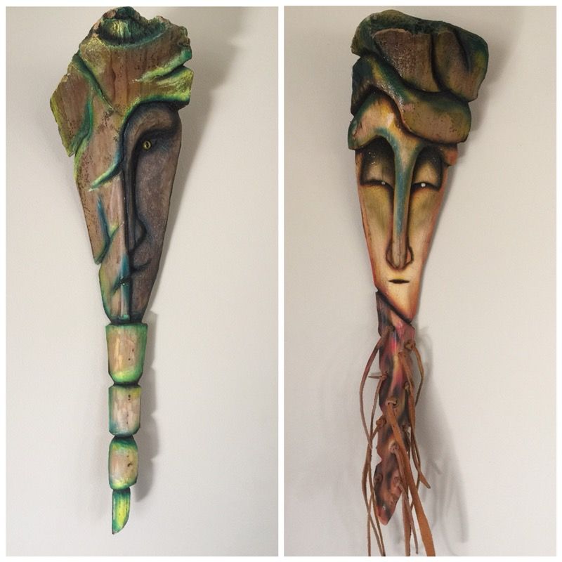 These masks are so beautiful and well made! Made by a very talented artist in Mexico. Made from palm trees and leather. Definitely eye catching and a wonderful art addition to your home!! $55 for each or $100 for both.