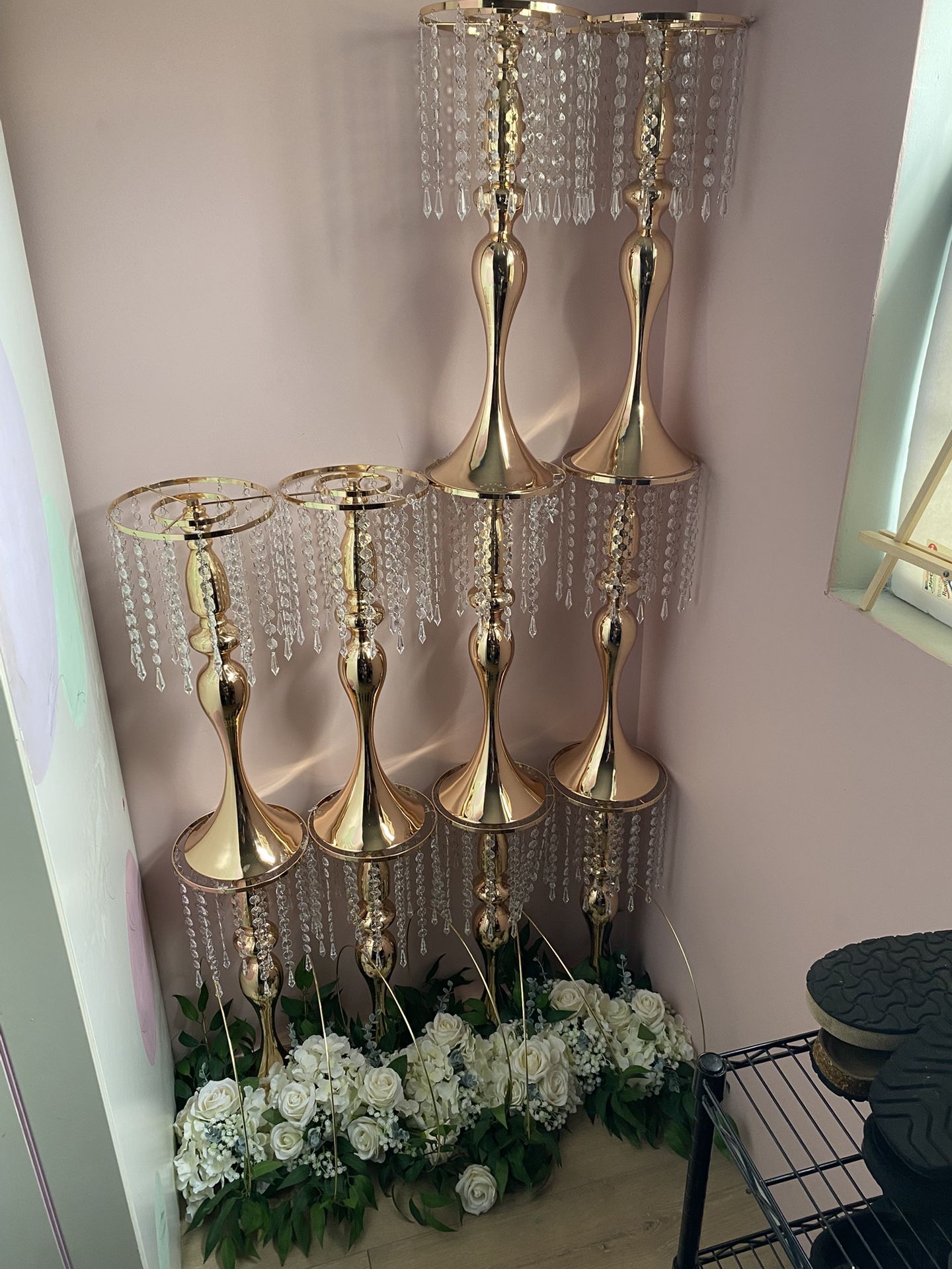 140 without floral arrangements 200 with 10 tall centerpieces, 10 hoop centerpieces