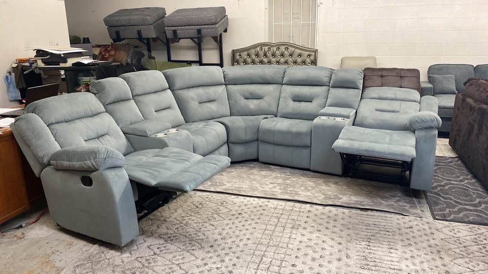 New Reclining Sectional. Grey Fabric. 116” X 116”. Free Delivery!