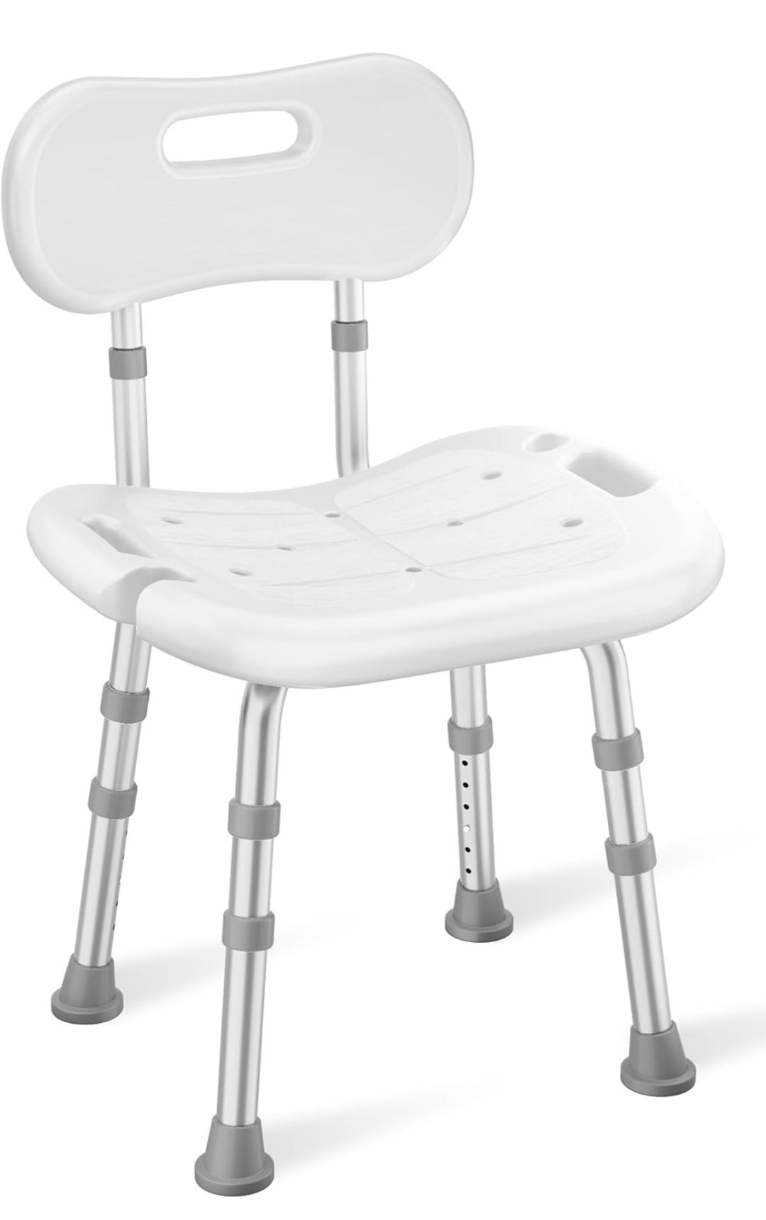 HOMLAND Shower Chair for Inside Shower with Removable Back, 350 lbs Adjustable Height, Non-Slip Heavy Duty Bath Chair for Bathtub, Shower Seat for Elderly and Disabled, White Item Dimensions D x W x H 15"D x 18"W x 31"H Minimum Height 26 Inches Seat Back Interior Height 11 Inches Additional details Material Type Aluminum Color White Maximum Weight Recommendation 350 Pounds