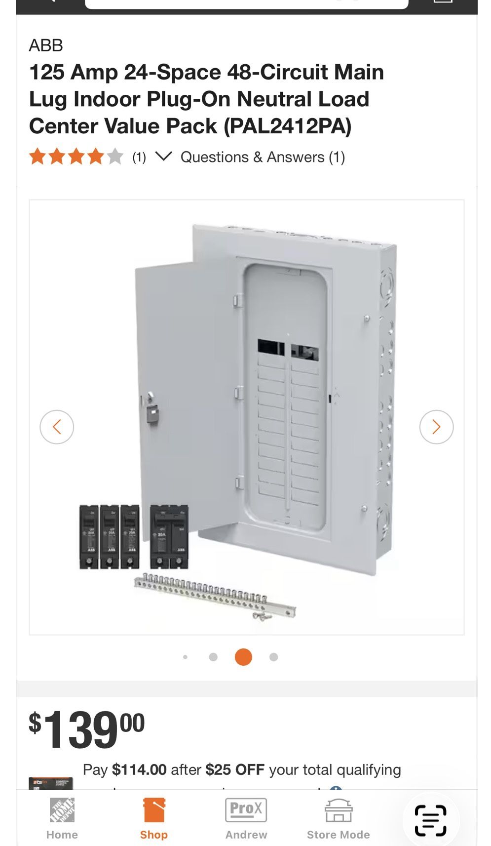 Price is firm. Precio Firme. I've got a new ABB 125 Amp 24-Space 48-Circuit Main Lug Indoor Plug-On Neutral Load Center Value Pack (PAL2412PA). These retail for $151 with tax at Home Depot. Pickup is off of 24st and Thomas 85006.