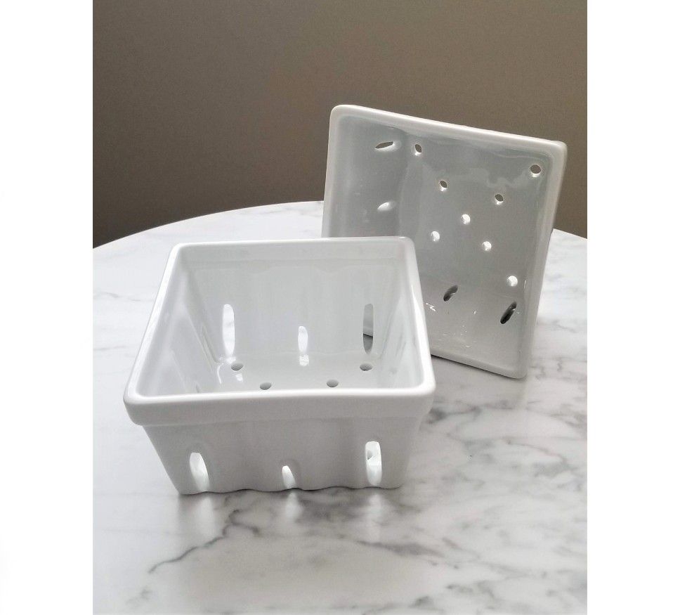 Crate & Barrel Ceramic Berry Colander Basket Set of 2 - White