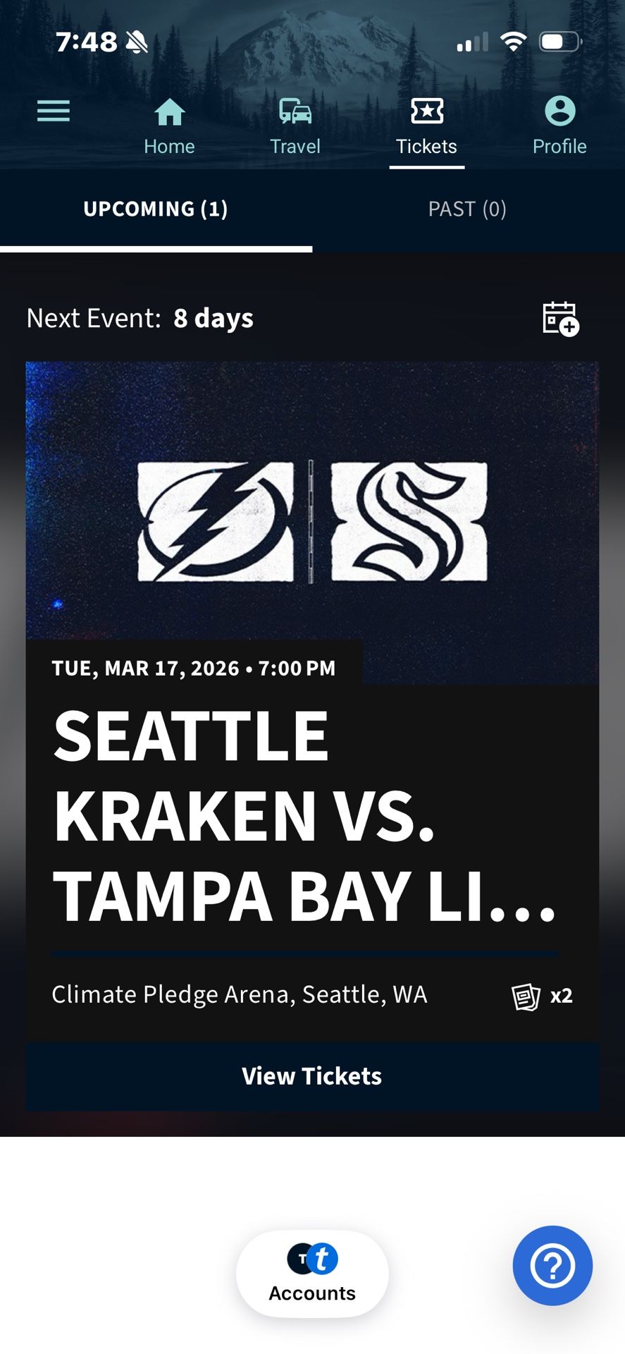 2 tickets NHL Seattle Kraken VS Tampa Bay Lightning March 17 at 7pm 334 First Ave N Seattle, WA 98109 United States 2 Tickets for $120
