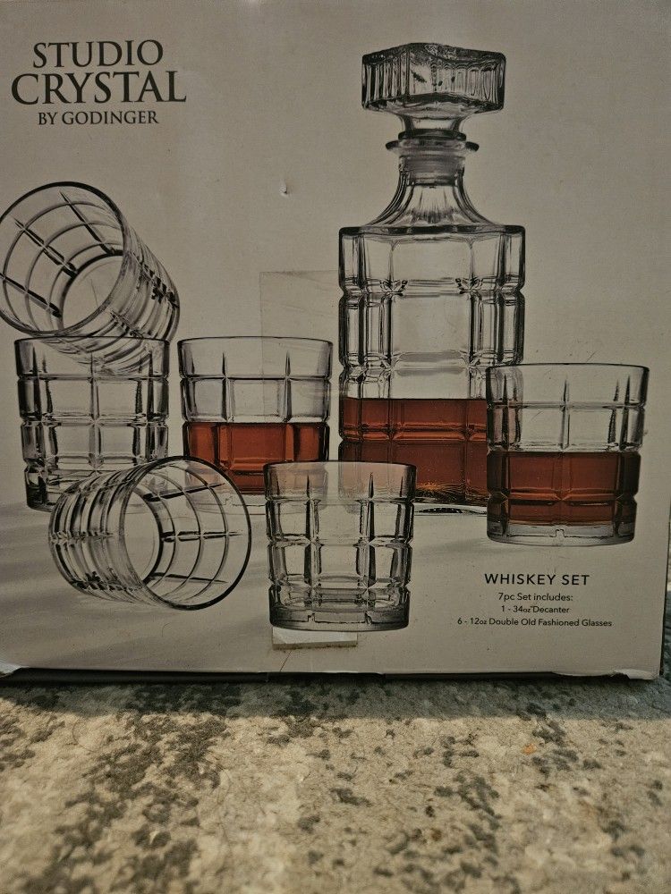 7 pc Whiskey SET 1 34 oz DECANTER 6 12 oz double Old Fashion Glasses Perfect for your bar or man cave