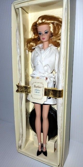 $180 OBO Beautiful 2004 " Trench Setter" Barbie Must See To Appreciate! SEE PHOTOS ** Damage To Box, No Damage To Doll ** Price Is Reflecting Damage Never Been Out Of Box / Played With! ** Cash Only** Meet/pickup 75056 The Colony The product is the 2004 Trench Setter Silkstone Barbie doll, which is part of the Barbie Fashion Model Collection. The doll was designed by Robert Best and is a limited edition collector's item. It features a blonde doll wearing a white trench coat with a printed design, a black skirt, a black purse, and black stiletto pumps. The doll is made from a material called "Silkstone," which is a weighted vinyl designed to imitate porcelain. The model number for this doll is B3442. The doll was manufactured in 2003 by Mattel in China, despite being designated as a 2004 release.