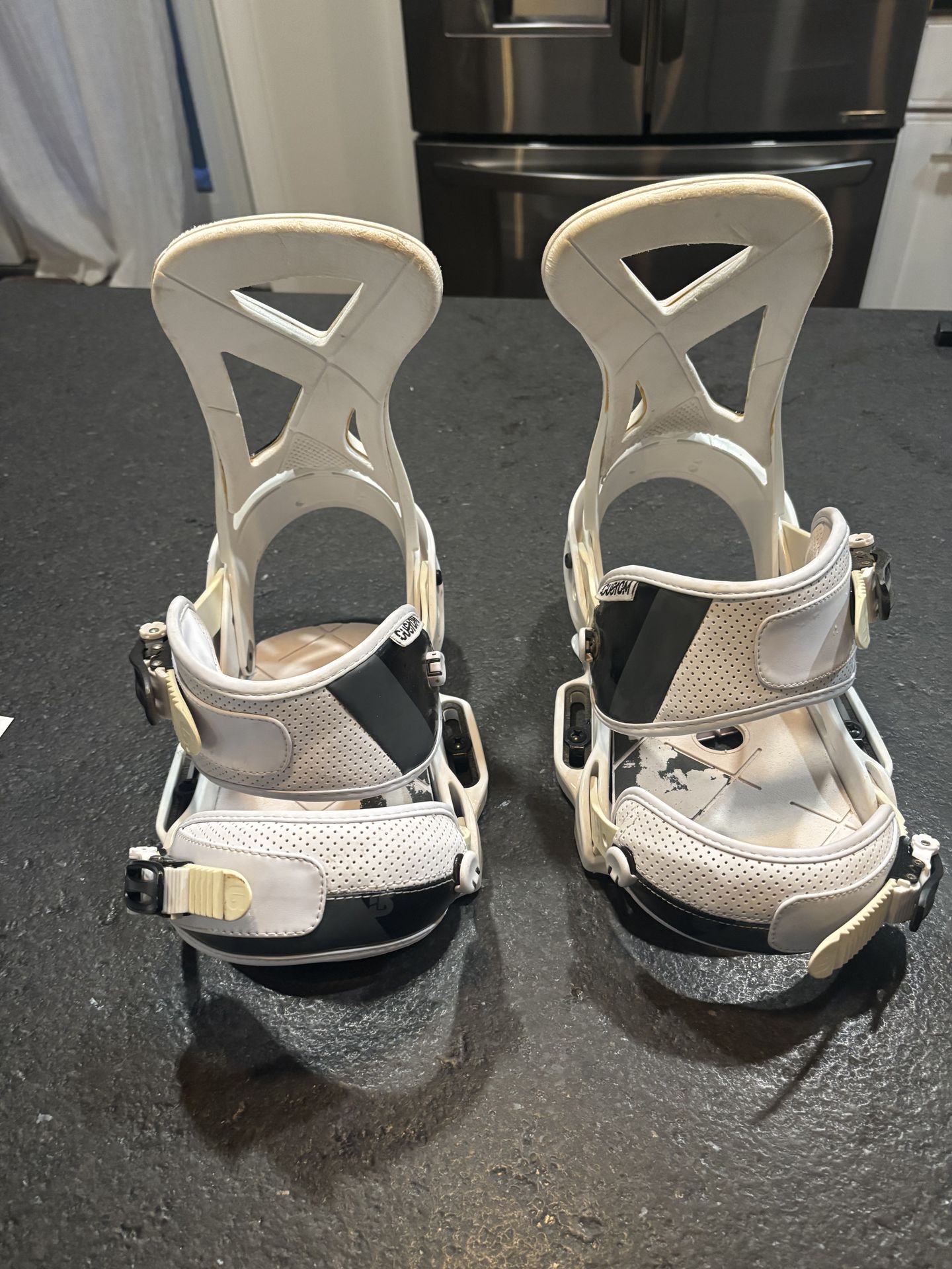 Set of Burton custom est bindings. Men’s medium boot size 8-11. Good condition.