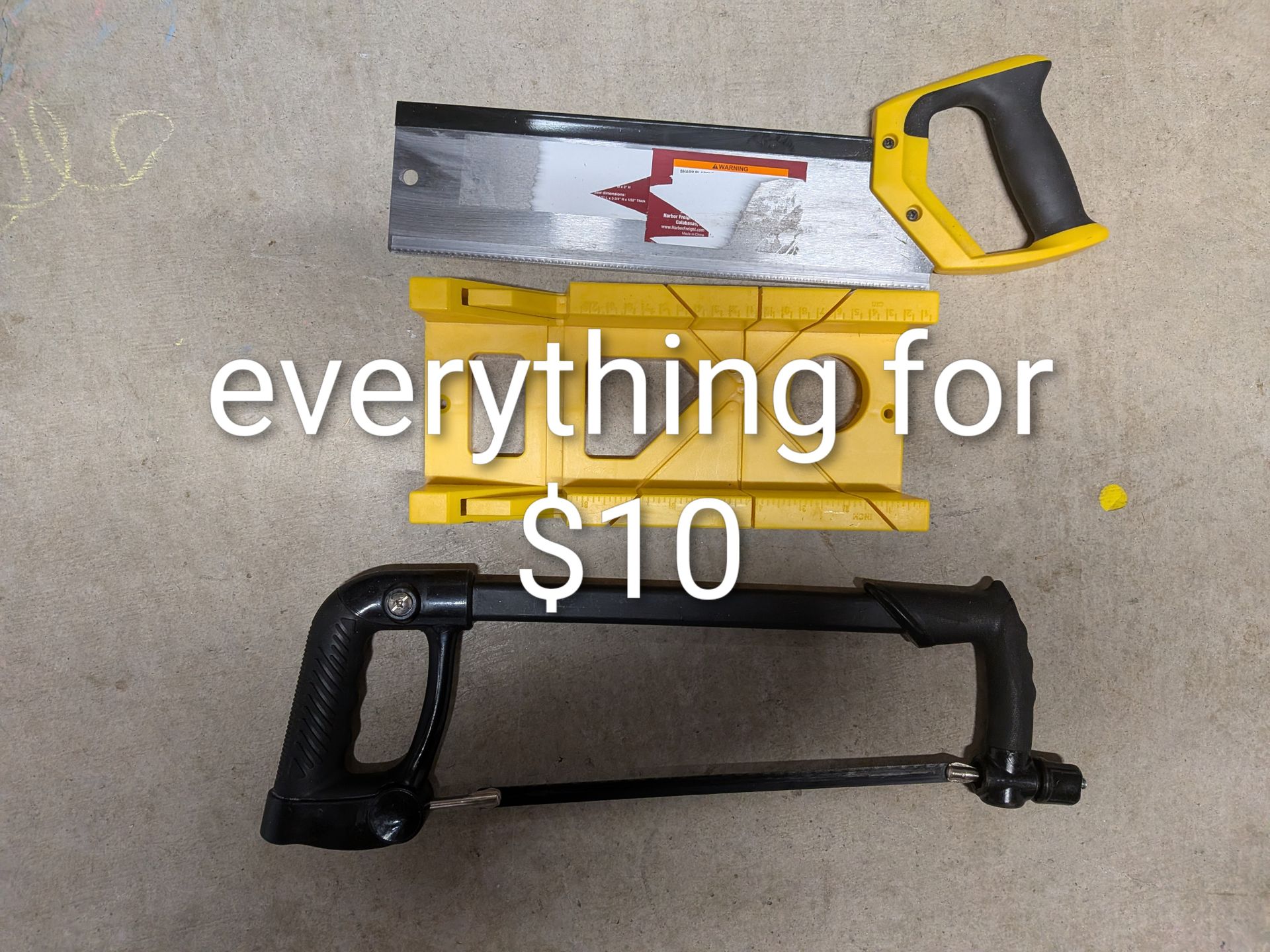 Hacksaw, miter box and backsaw