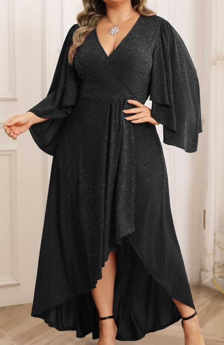 Brand new still in bag … Sparkly Glitter Formal Maxi A Line Dress Sparkle Wrap Handkerchief Sleeve Prom Cocktail Evening Gown. XXL . But it will also fit an XL .Bought it for a wedding party but didn’t arrive in time. So since i don’t need it i will sell it. I paid 67 dollars for it.