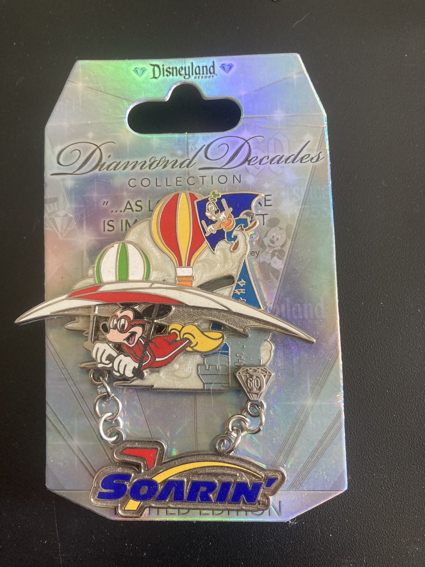 Disney Diamond Decades 60th Anniversary Soarin over California limited edition dangle slider pin, New on card, Mickey Mouse