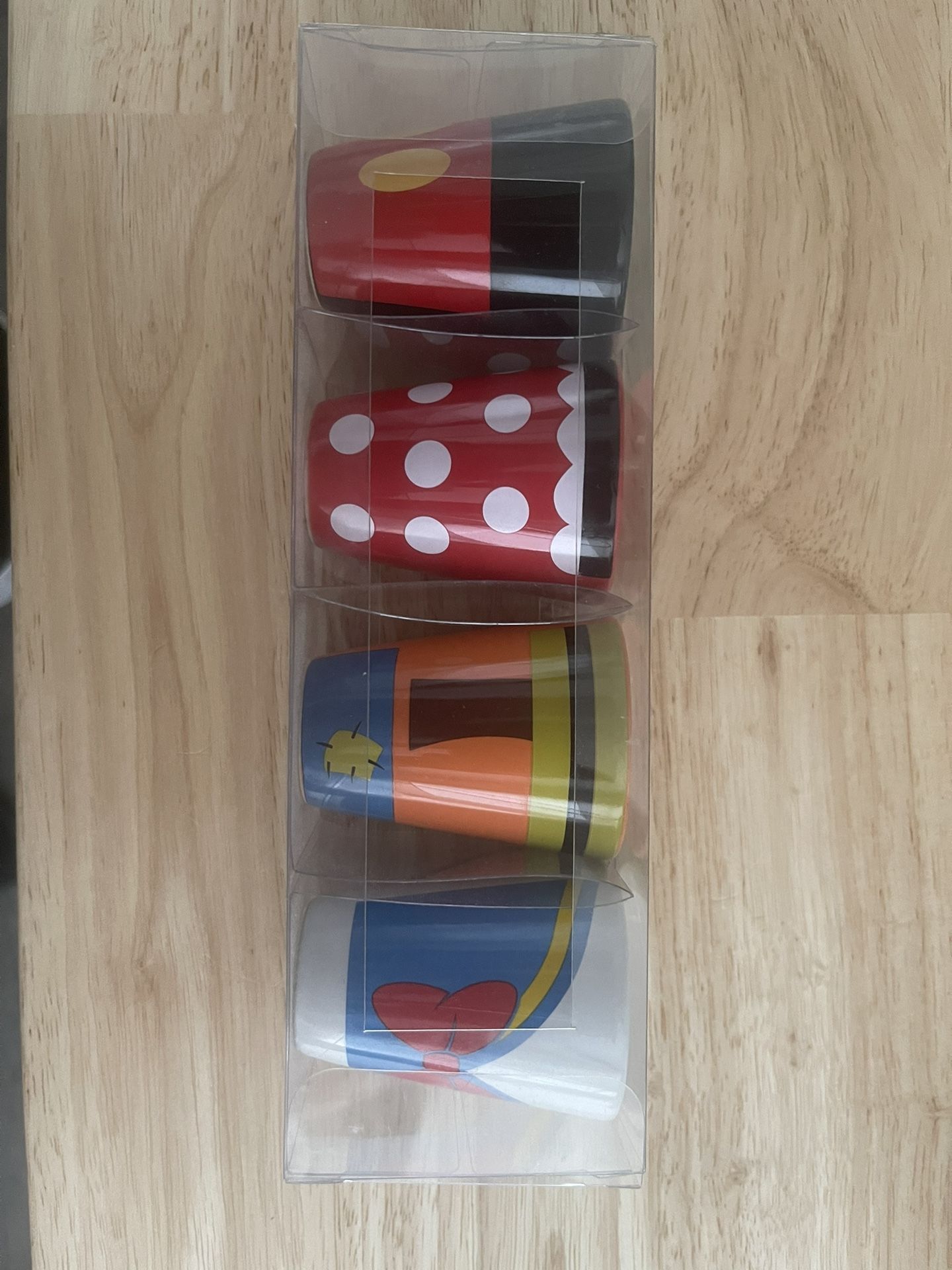 Never been used Disney shot glasses from Disney World. Still in original packaging.