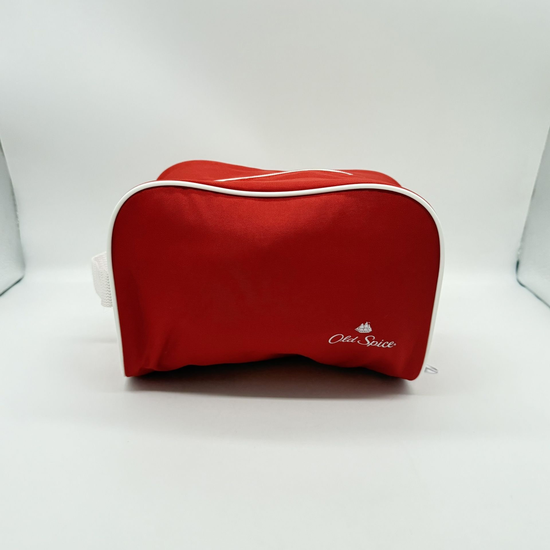Cool Old Spice red toiletry bag. Has white zipper and white piping. Also a white handle on side. Great for travel or keeping stuff organized. Dimensions: Approximately 9.5 inches in length. CASH ONLY PICK UP ONLY